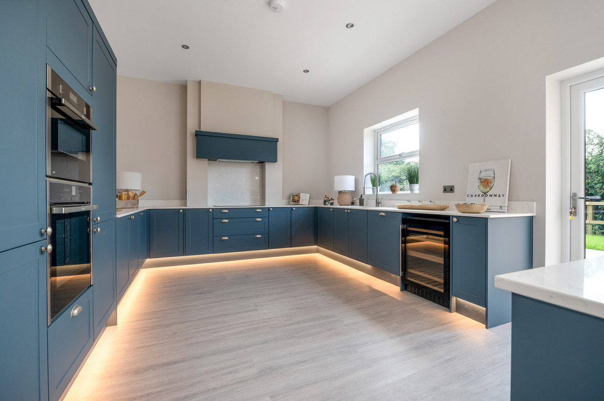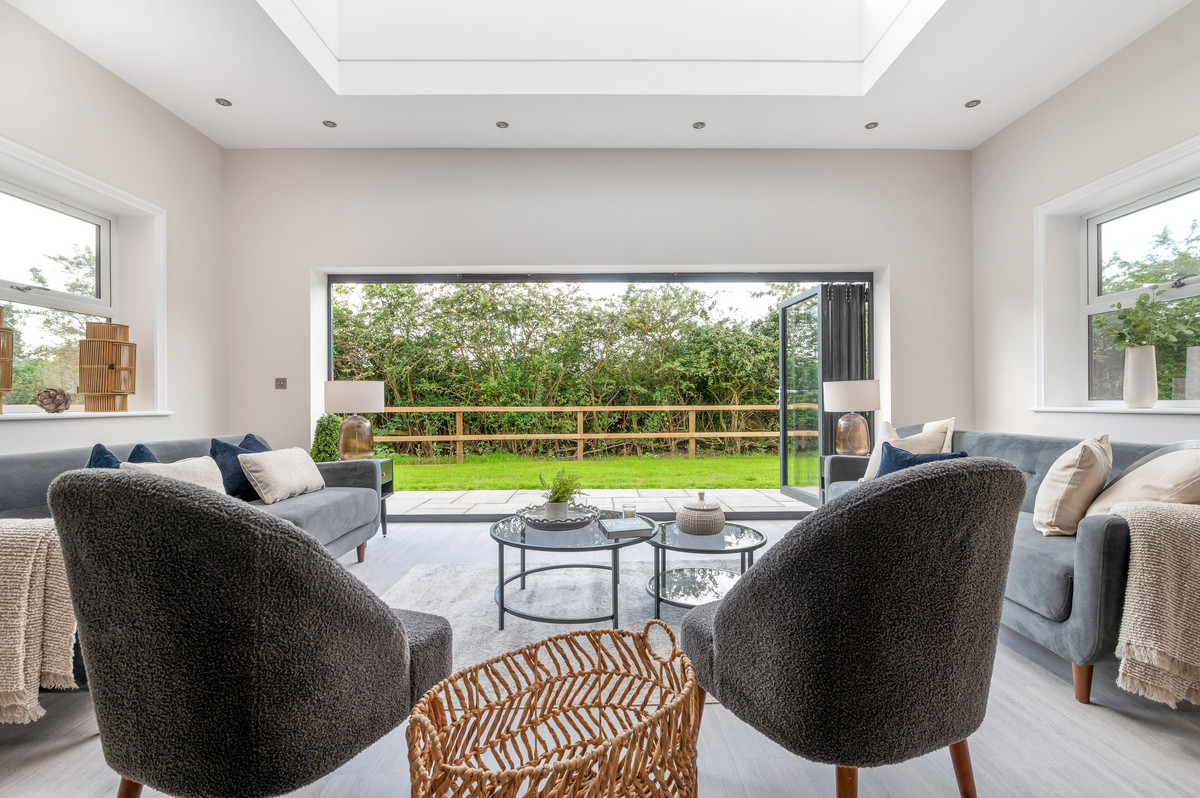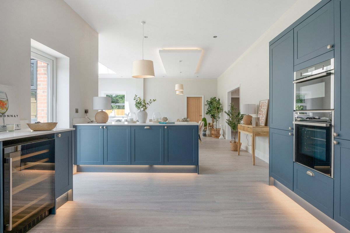 The Kingsholm, (Plot 7), extends to 3690 sq.ft. and is set on an expansive 1 plot, offering a retreat of secluded living for its new owner. This distinguished property features a truly spacious open-plan kitchen/diner, complemented by a separate utility and boot room. The kitchen/diner is bathed in natural light, featuring a charming seating area beneath a grand roof lantern. Expansive bi-fold doors extend this exquisite space into the garden, creating a seamless fusion of indoor and outdoor living.