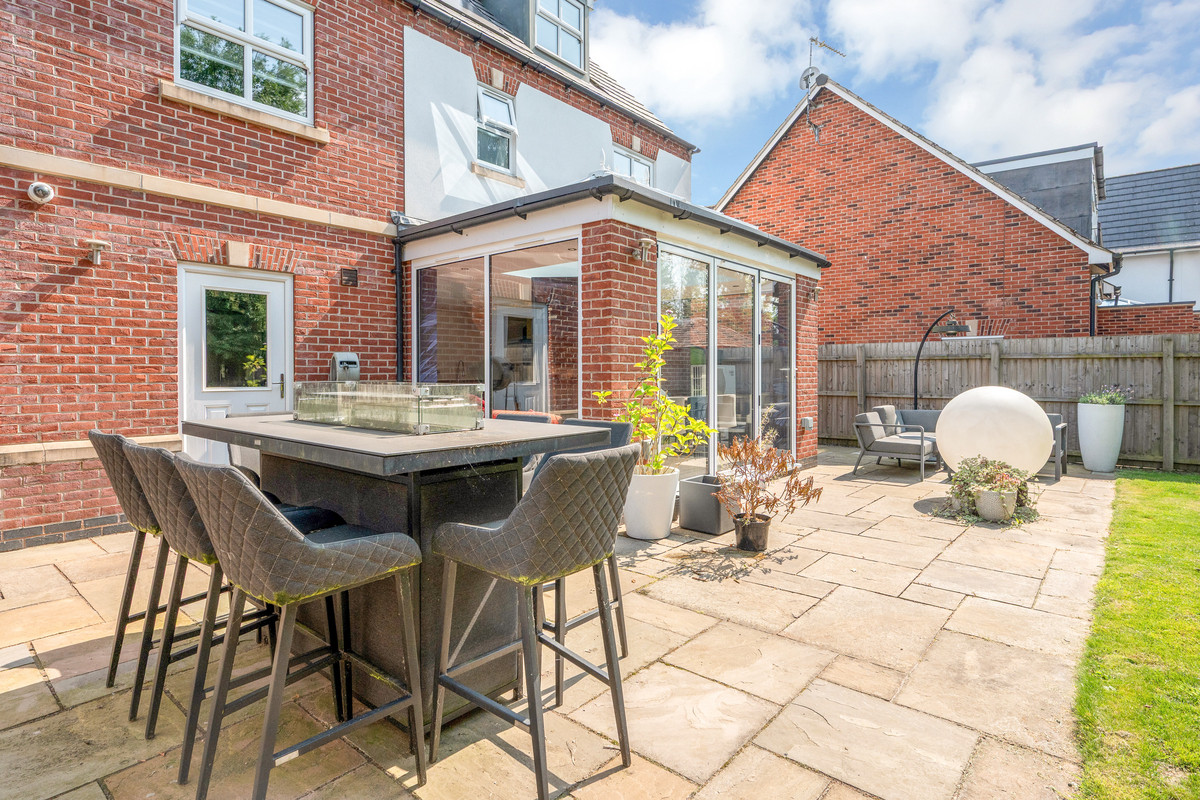 Externally, the property is accessed via private electric gates shared by just 4 other homes offering an additional level of security and privacy. The attractive frontage of the home is predominantly paved with a generous driveway capable of accommodating several vehicles, a lawned area and access to the integral garage which benefits from an EV car charger. The low-maintenance, enclosed, and south-facing rear garden has been configured with entertaining and family living mind. There is a substantial paved patio, lawned area and fenced borders to all sides.