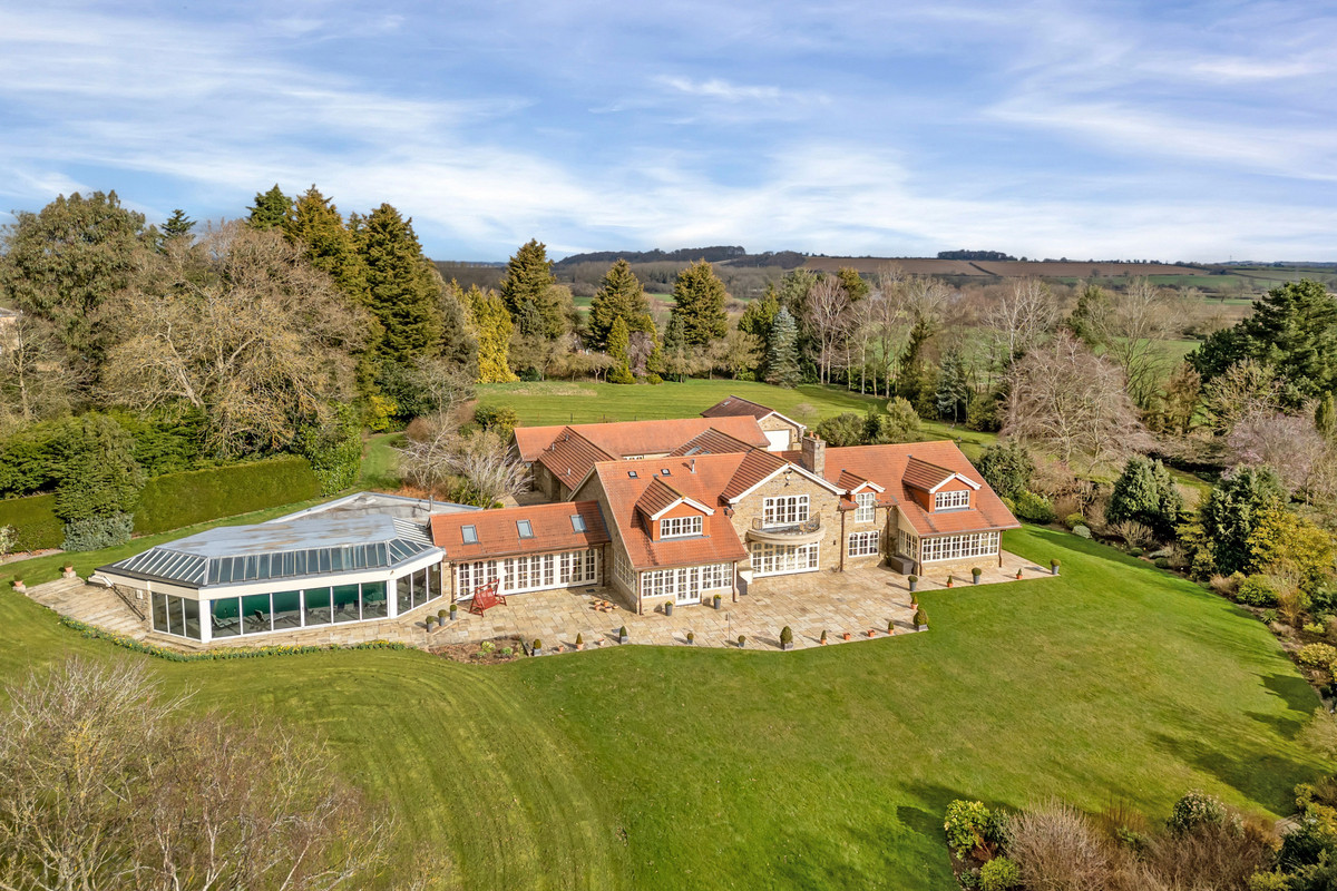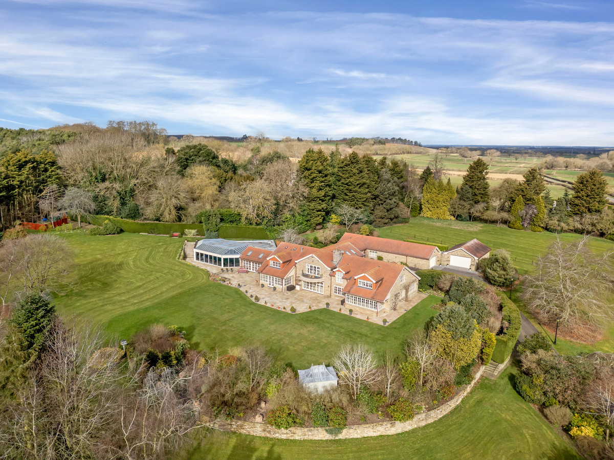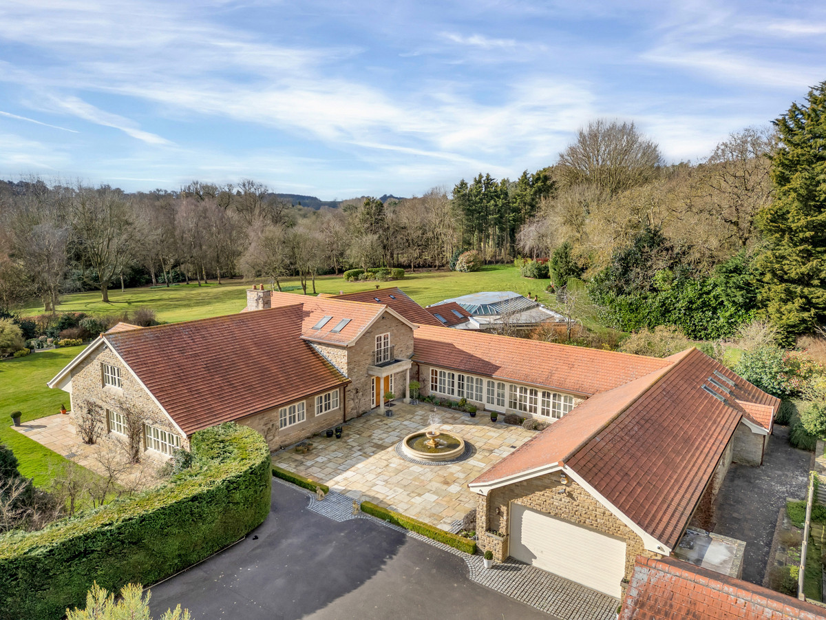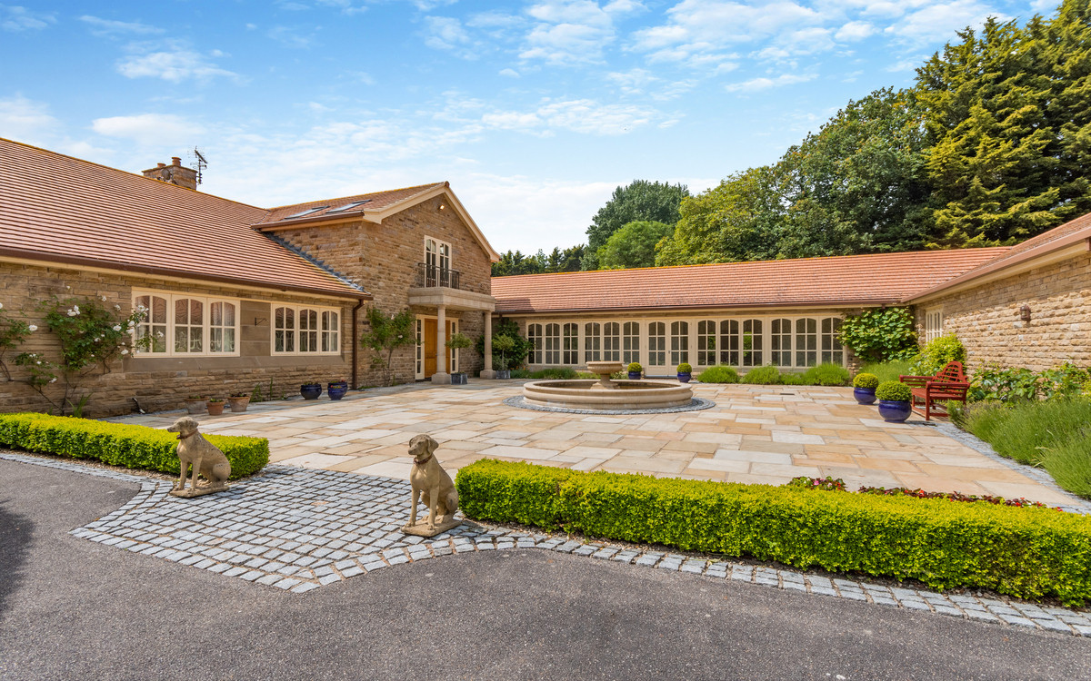 Rothwell Lodge is accessed via wrought iron electric security gates opening onto the sweeping tarmacadam driveway, flanked by generous lawns, leading to the car standing area and garages. A delightful paved courtyard giving access to the front entrance and a feature fountain.