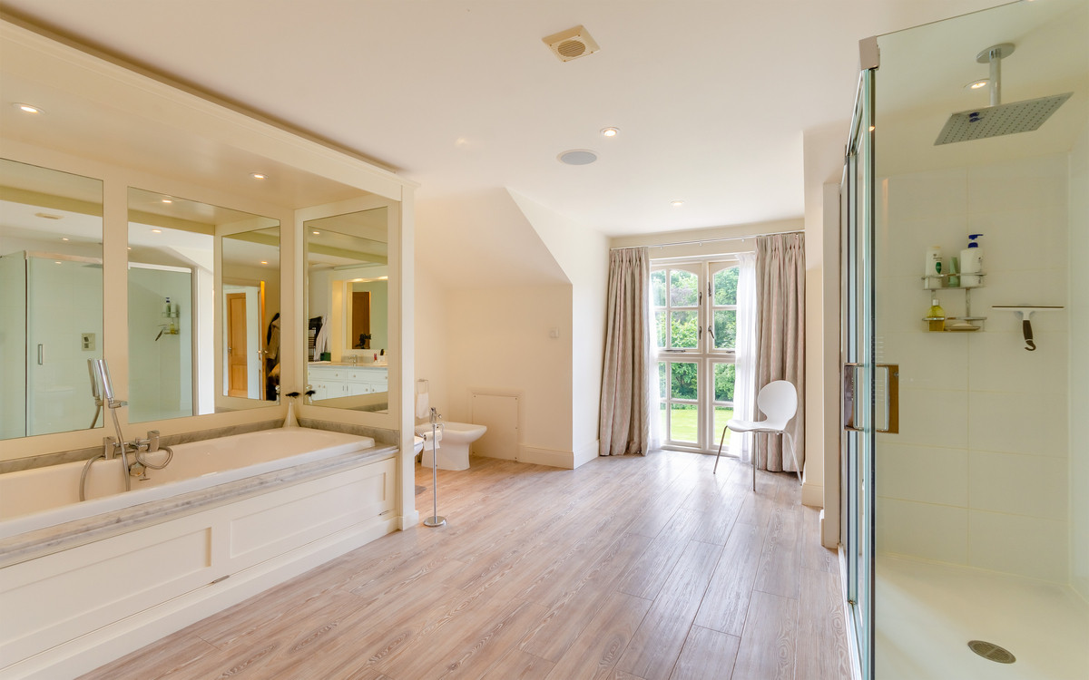 The ground floor also provides a wing of bedroom accommodation as well as a superb home office. Both bedrooms are luxurious, and benefit from high quality en-suite facilities.