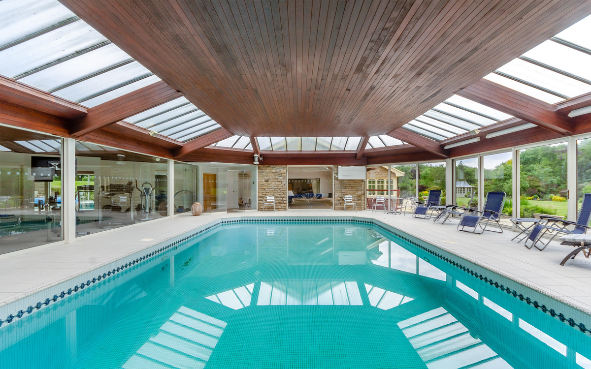 The Leisure suite is a superb feature of this home. It features an indoor heated swimming pool, with entertaining area to the side featuring sliding doors giving access to the gardens.