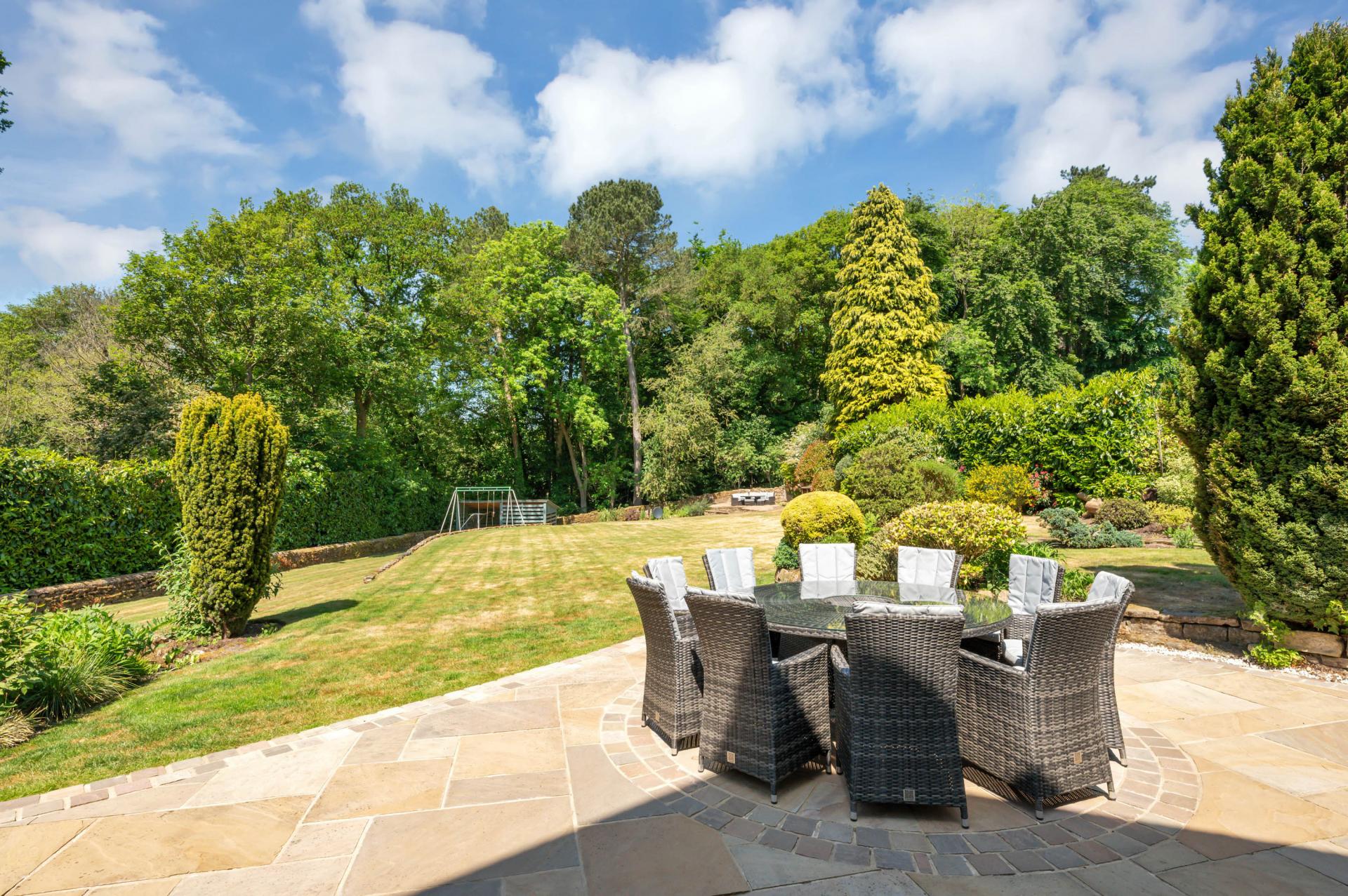 Lake End enjoys truly outstanding gardens to both front and rear which extend to circa 0.5 acres in all and blend seamlessly with the Newstead Abbey Park woodland which surrounds them. The sweeping tree lined private road approach leads up to the property where you can find off street parking for a number of vehicles as well as access to the attached double garaging. The beautifully landscaped side and rear gardens comprise of substantial lawns for families to relish, several paved patios perfect for entertaining, a firepit area, covered log store and a plethora of stocked borders/ beds with established select planting.