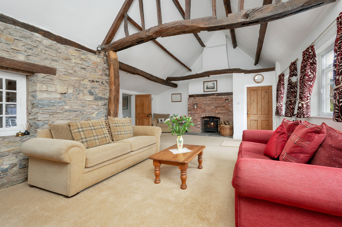 A traditional staircase rises to the first floor where a split level landing provides access to a lovely main bedroom with heavily beamed ceiling which has the benefit of a high quality Jack and Jill en suite bathroom. This floor also provides two additional double bedrooms as well as a family bathroom.