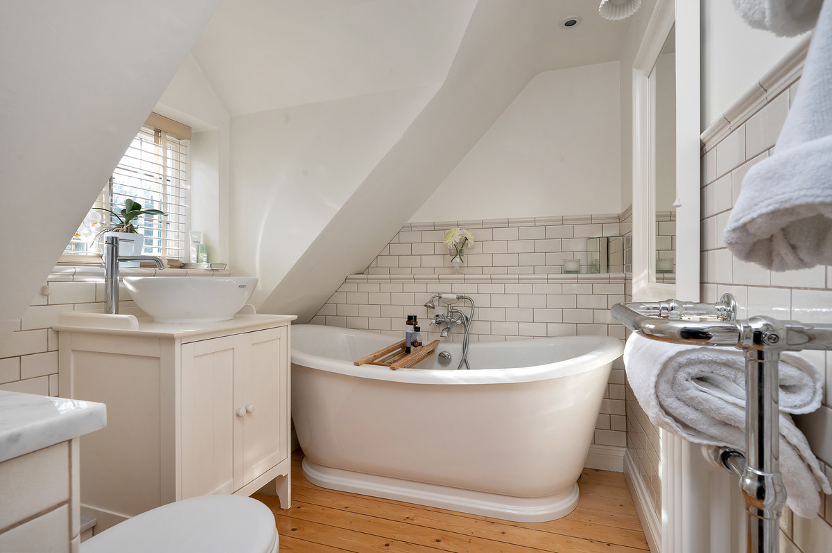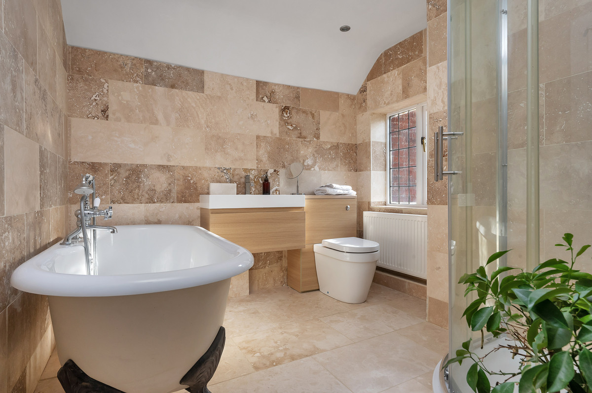 The first floor can be accessed by two staircases and features up to five bedrooms. The main bedroom is particularly pleasant with vaulted ceiling and high quality en suite bathroom. There are up to four further bedrooms (one of which is currently used as a home office) which share the use of two high quality bathrooms. It should also be noted that there are various useful options for storage.