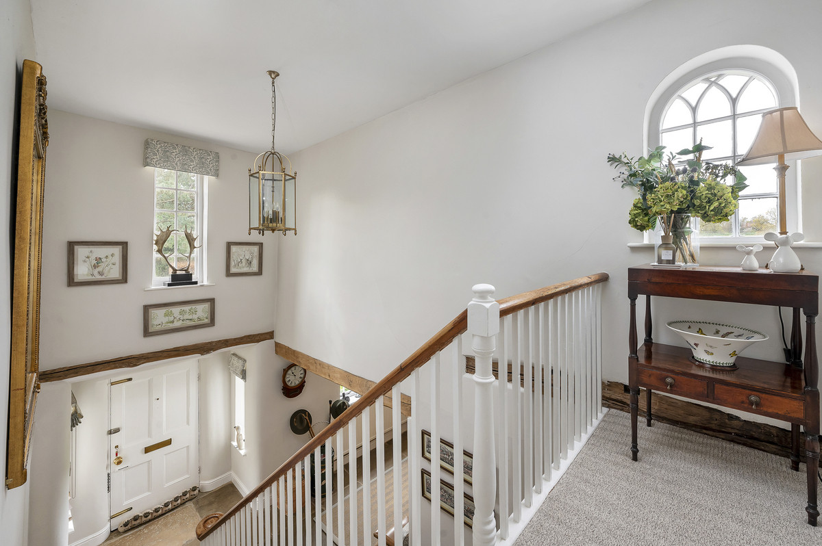 On the first floor a pretty galleried landing leads to a main bedroom with bathroom opposite, three further double bedrooms and high quality family bathroom. The generous fourth bedroom benefits from a dressing room and gives access to a former Billiard room and store room, offering further potential if required.