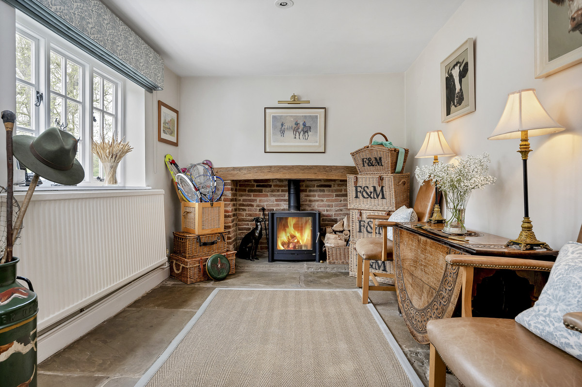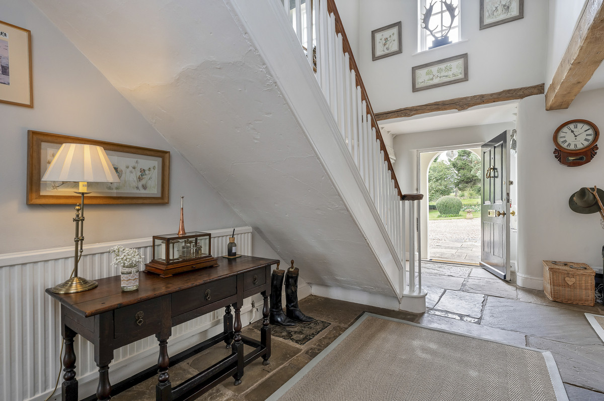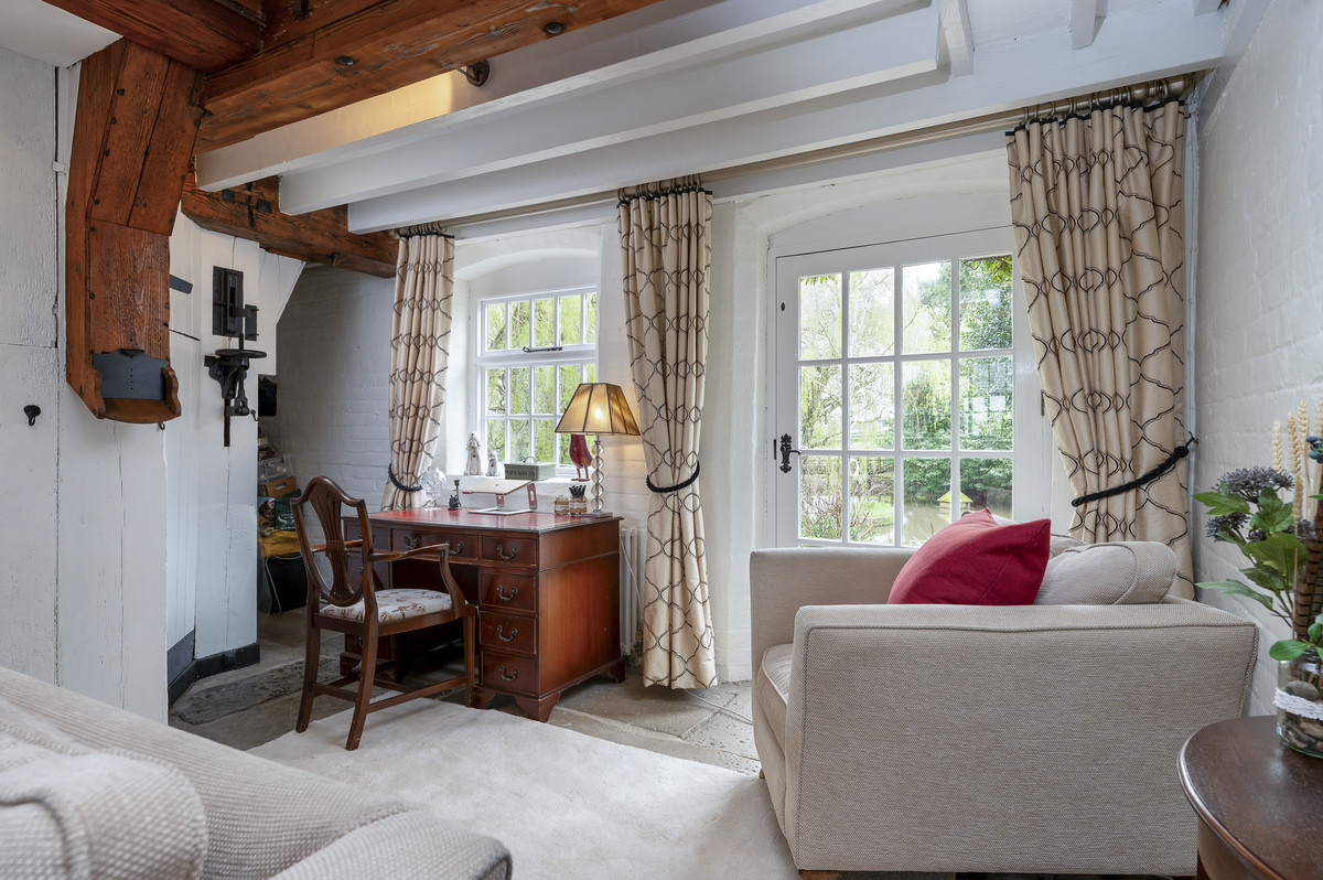 As you enter the property, you are made aware of its period features; flagstone floors, exposed beams, original doors and fireplaces and deep sash windows. From the fine reception hall you access the elegant sitting room, with stunning views over the front garden. The exceptional dining room/drawing room – always known as ‘the mill lounge’ – incorporates unique features relating to its former use and idyllic views over the mill pond. All reception rooms have a southerly aspect.