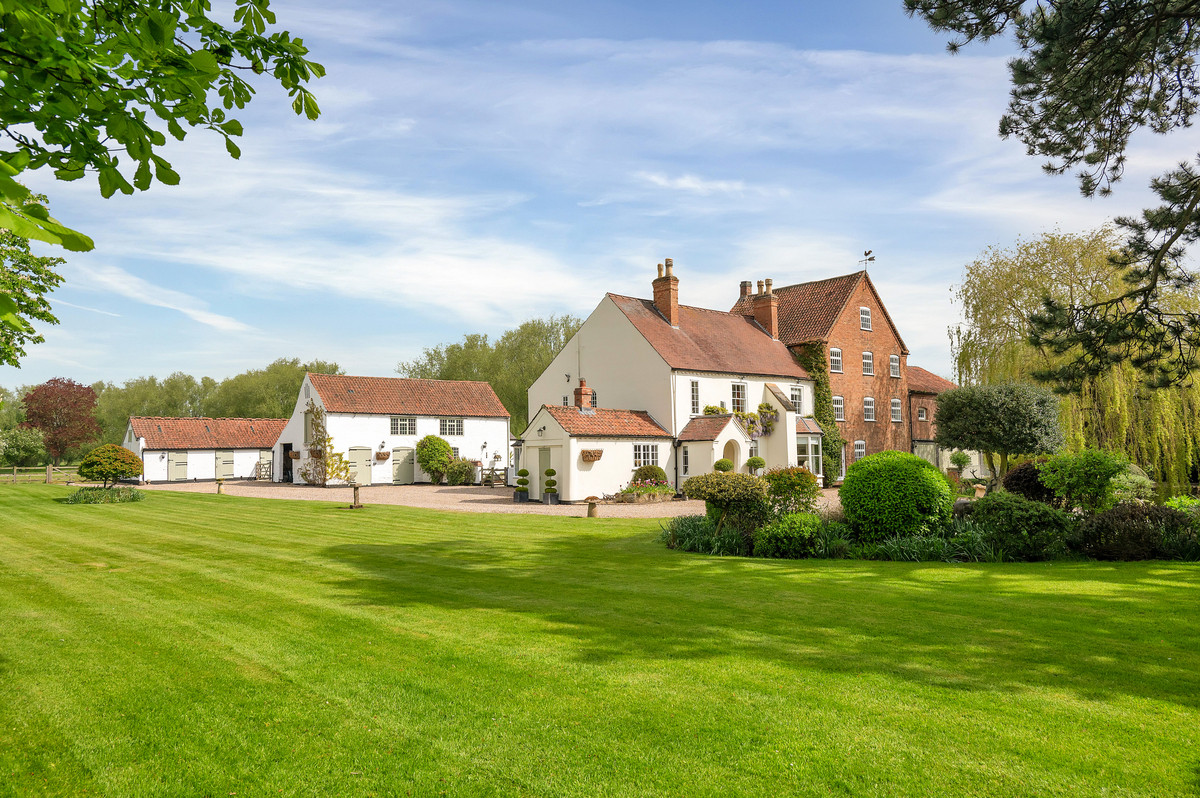 Lowdham Mill is approached via a private sweeping driveway accessed from Epperstone Road, culminating in a gravelled turning circle in front of the house.