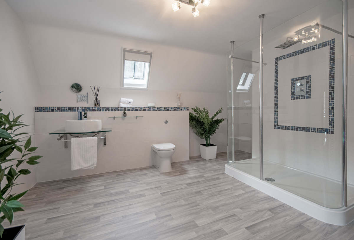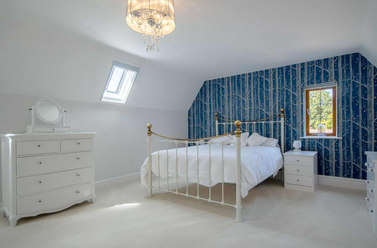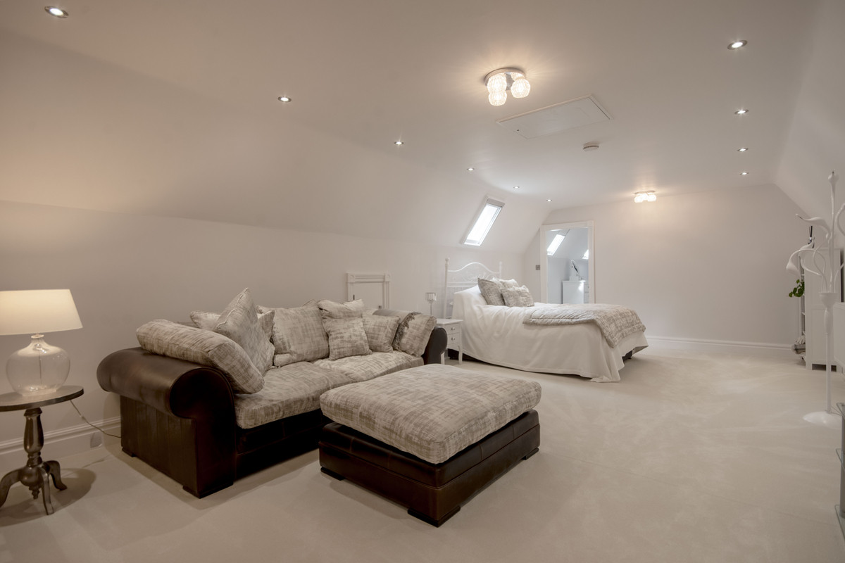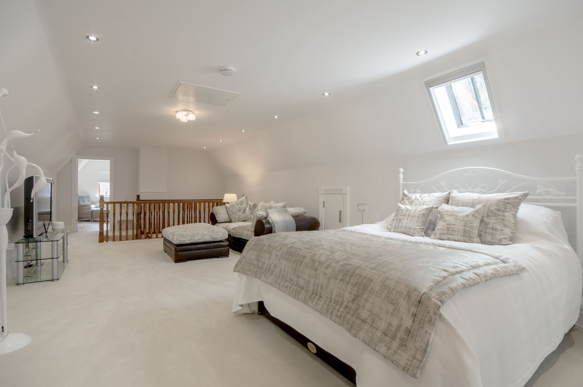 The top floor is perfectly suited to older children, guests, or extended family, offering a generous dual aspect bedroom with fitted furniture, a large lounge area with eaves storage, and a spacious en-suite shower room.