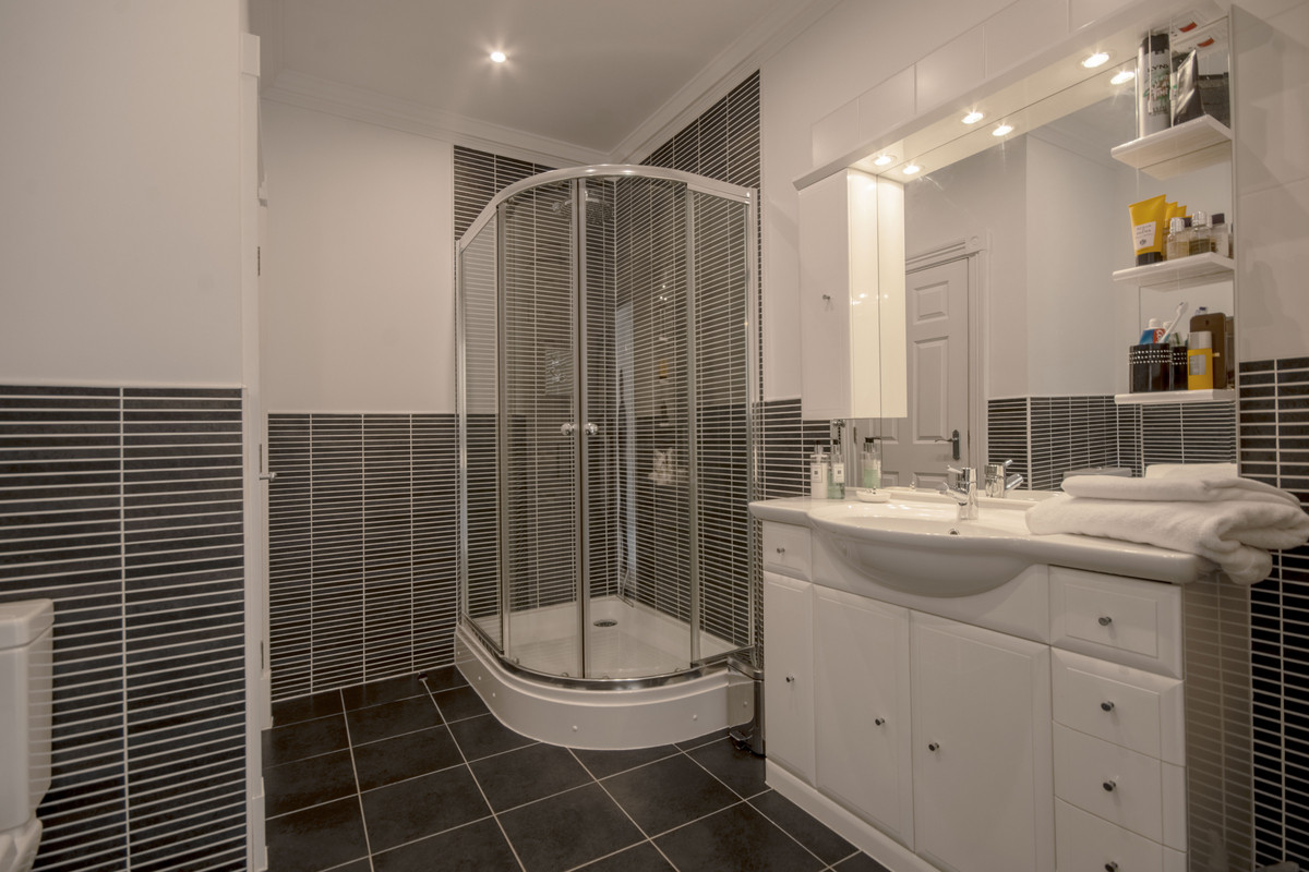 At the heart of the home lies the magnificent open-plan kitchen, lounge, dining area. The bespoke kitchen is finished with a large central island and premium appliances, complemented by a light-filled dining and living space that opens directly onto the rear terrace, enjoying a delightful vista over the rear garden. A well-equipped utility room adds practicality, providing further storage and direct access to the courtyard.