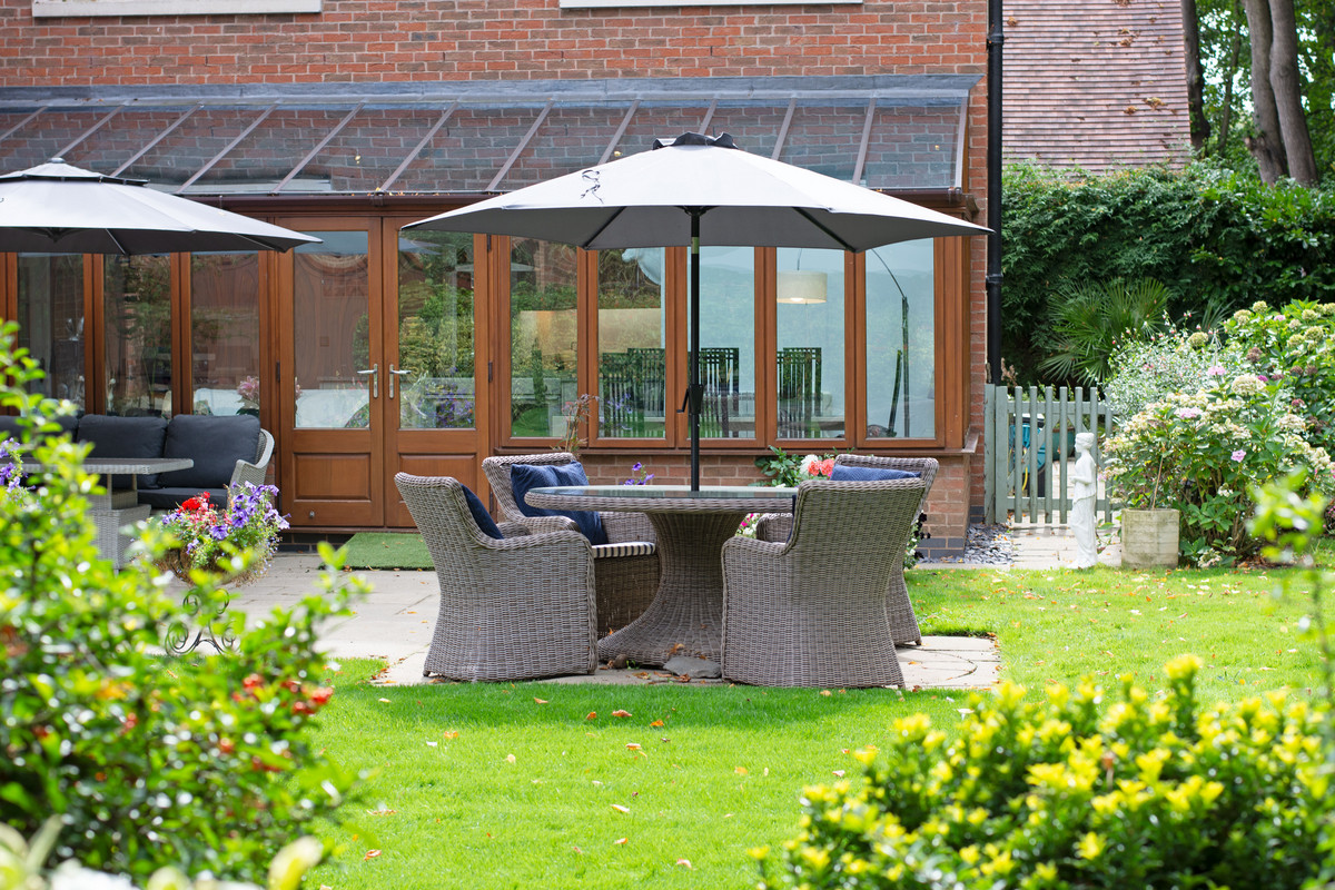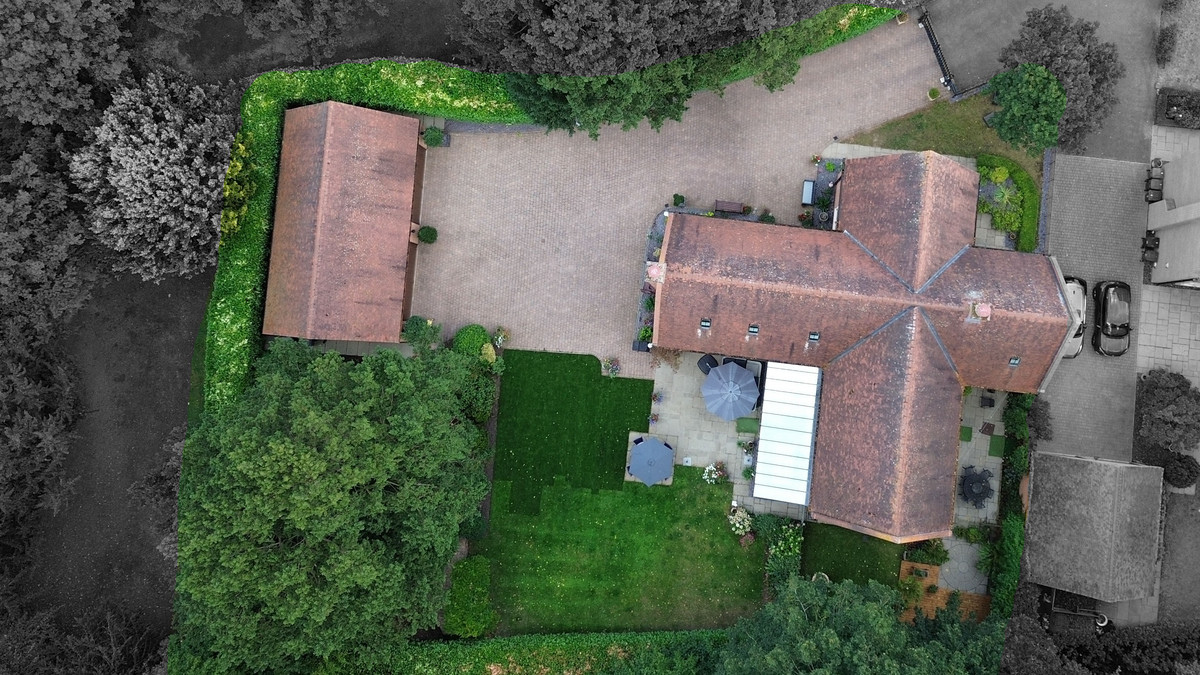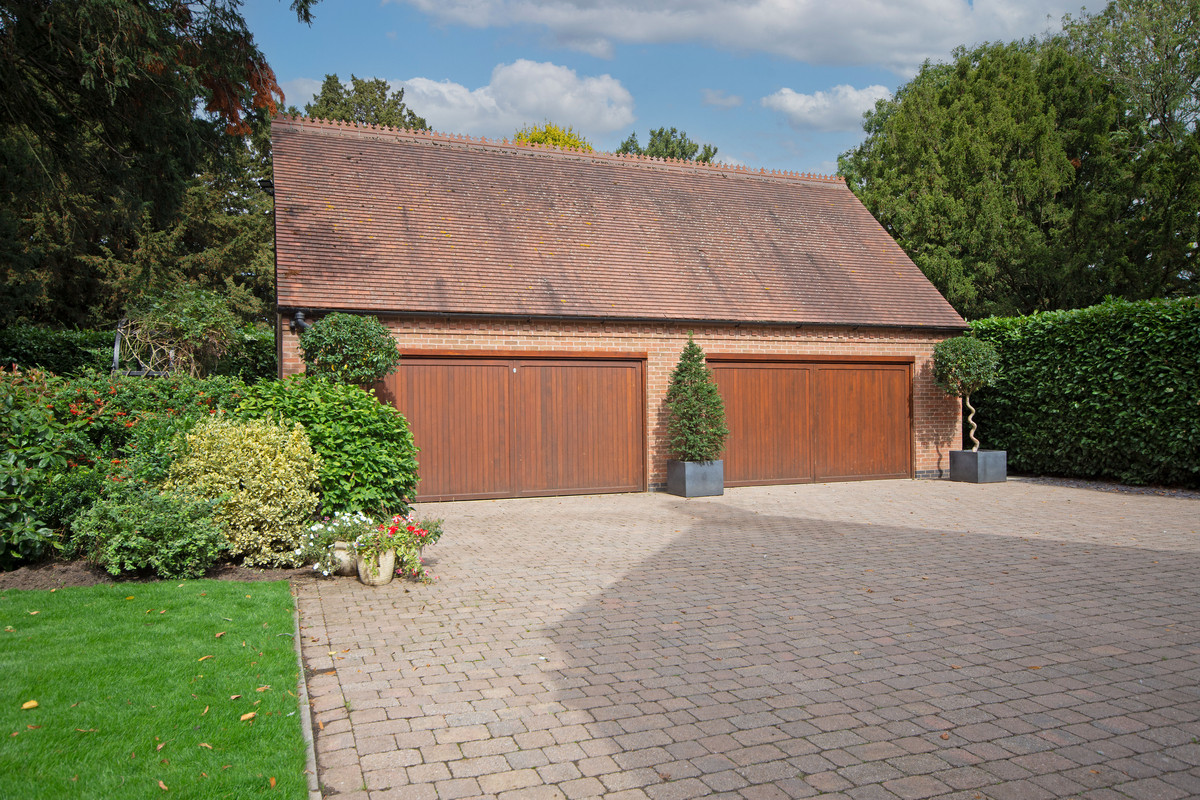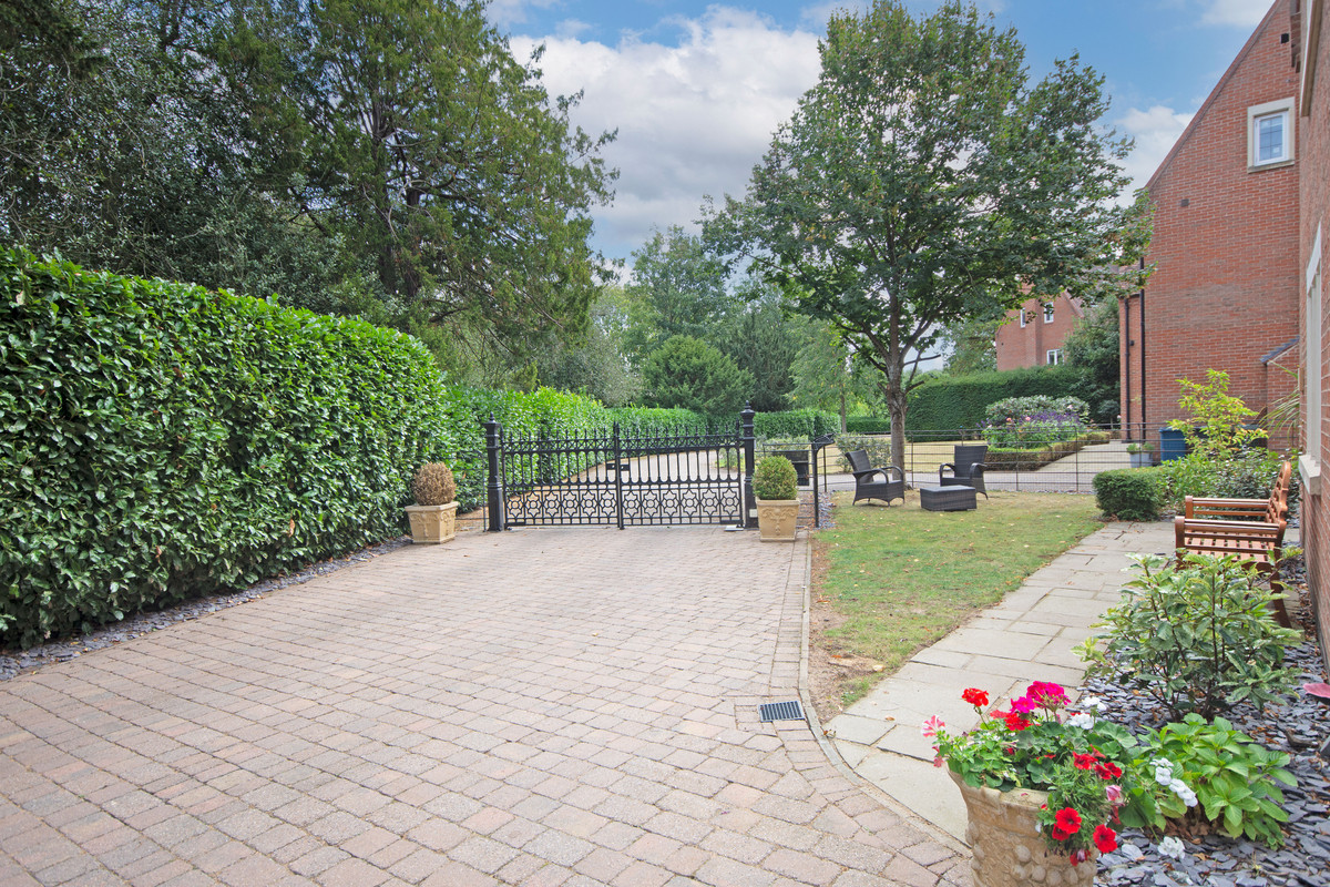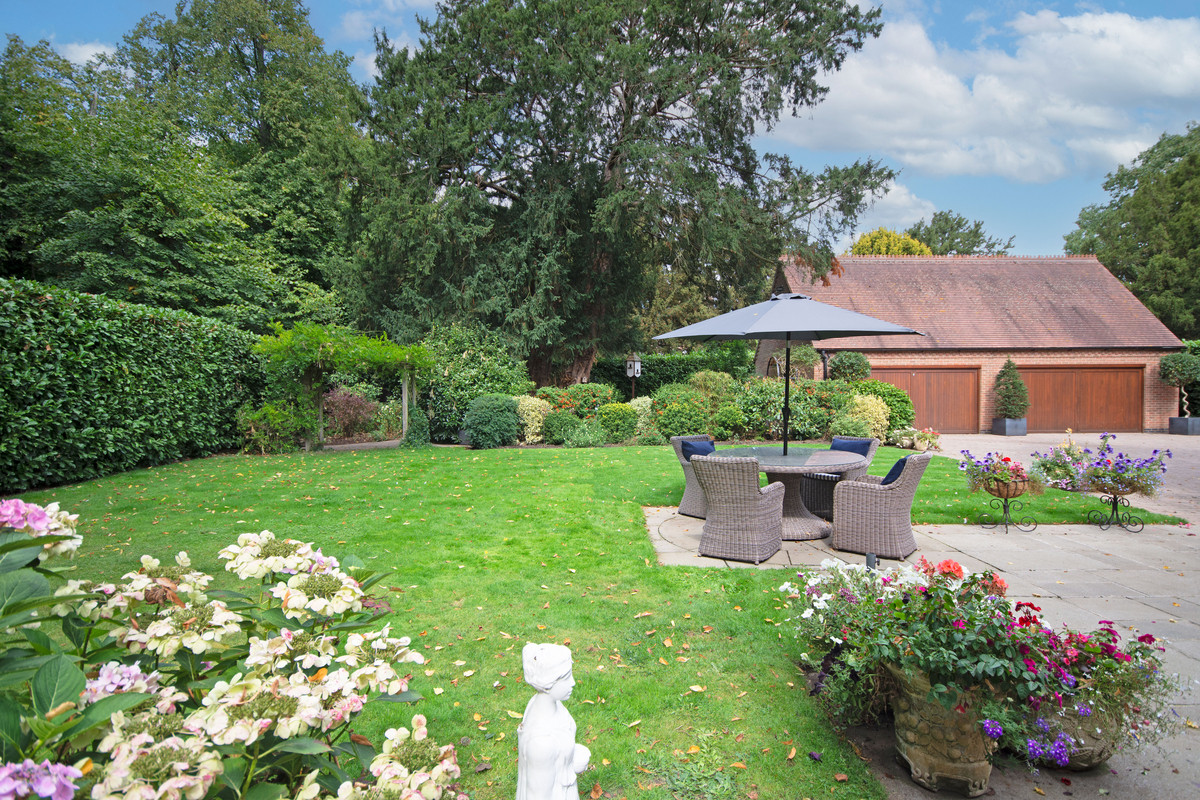 Wellingtonia House is approached via double electric gates and a sweeping driveway which leads to a vast block-paved forecourt and a four-car garage. Above the garage is an expansive loft space with potential for conversion into a gym, cinema room or annexe, subject to the necessary consents. To the rear, the gardens are beautifully landscaped and wonderfully private, laid mainly to lawn with mature planting and a large terrace ideal for entertaining. A hidden garden with established trees and a tranquil seating area offers a more secluded retreat, while a courtyard garden to the side, complete with raised decking, provides additional space to relax outdoors.