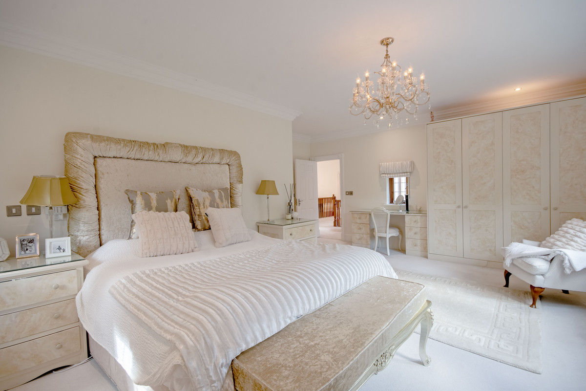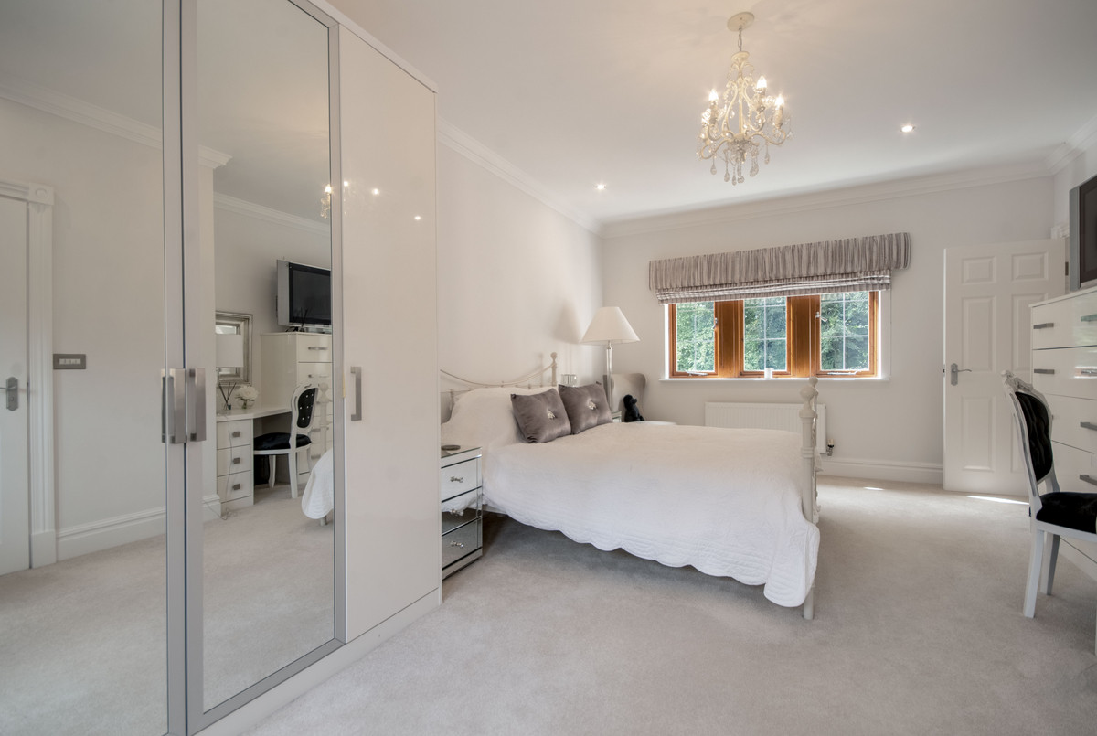 The first floor is home to the impressive principal suite, which combines a dual aspect bedroom with a fully fitted dressing room and a luxurious en-suite bathroom. Two additional en-suite bedrooms, both with fitted wardrobes also enjoy dual aspect views, while two further double bedrooms overlook the gardens. A fully fitted study creates an ideal home office, and a stylish family four piece bathroom completes this level.
