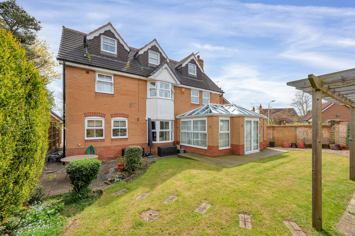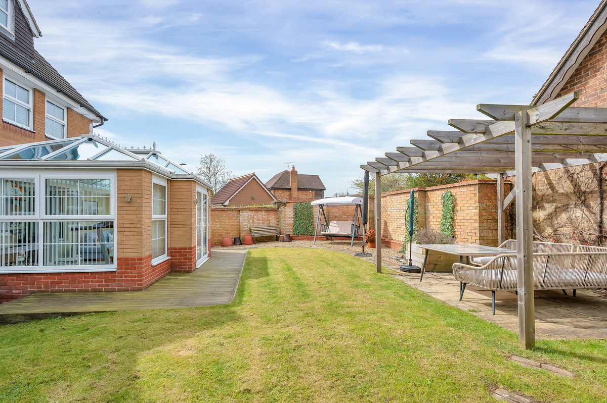 The immaculate presentation found within the home continues outside, with the landscaped gardens to front and rear providing a lovely space to enjoy and are maintained to an excellent standard. To the front of the property a substantial block paved driveway provides parking for a number of freestanding vehicles, as well as giving access to the detached double garage. The enclosed and private rear garden accessed from both the property and side passage, offers a low-maintenance space perfect for families which benefits from a paved patio, decking off the garden room and lawned area.