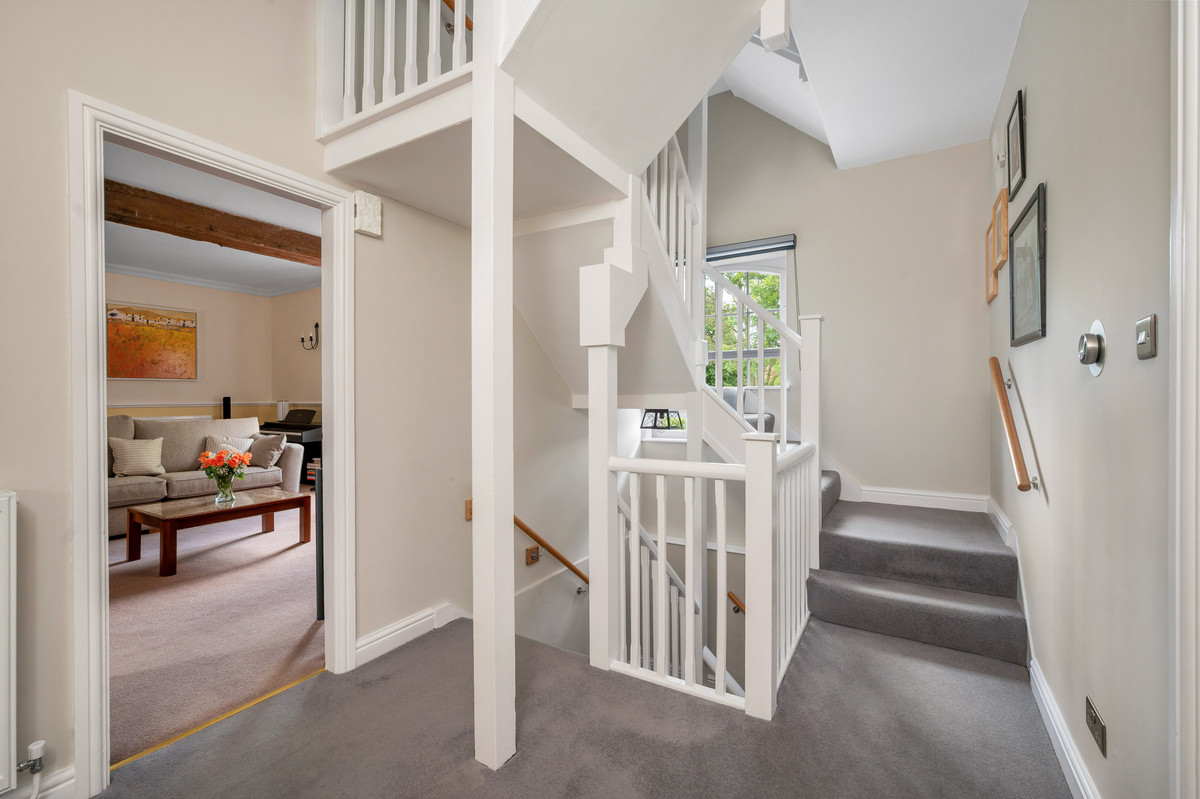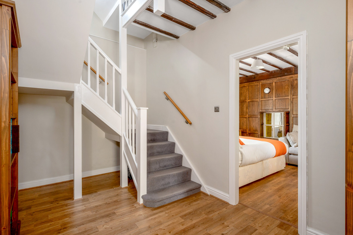 At the pinnacle of the residence, the third-floor studio presents an inspiring open-plan space with a dual aspect, featuring windows on both gable ends. Large Velux roof lights flood the area with natural light, highlighting the period roof trusses and purlin timbers. This unique space also incorporates the miller’s grip and original pulley wheel, historic features where sacks of grain would have once entered the mill. Perfectly suited as a private apartment for a family member, a creative studio, or a serene home office, the versatile nature of this exceptional space offers endless possibilities to suit your lifestyle and needs, all within an inspiring and characterful setting.