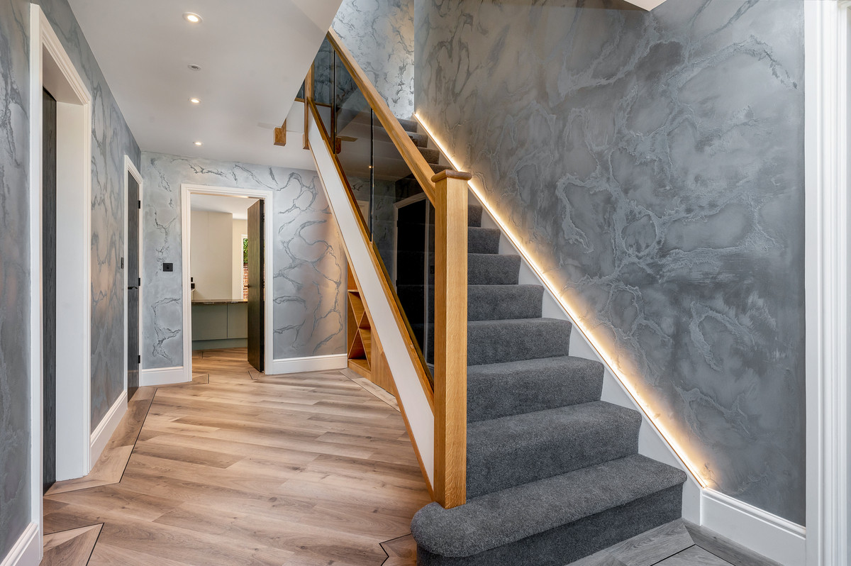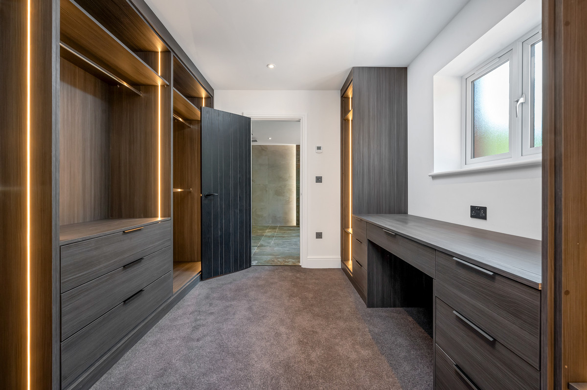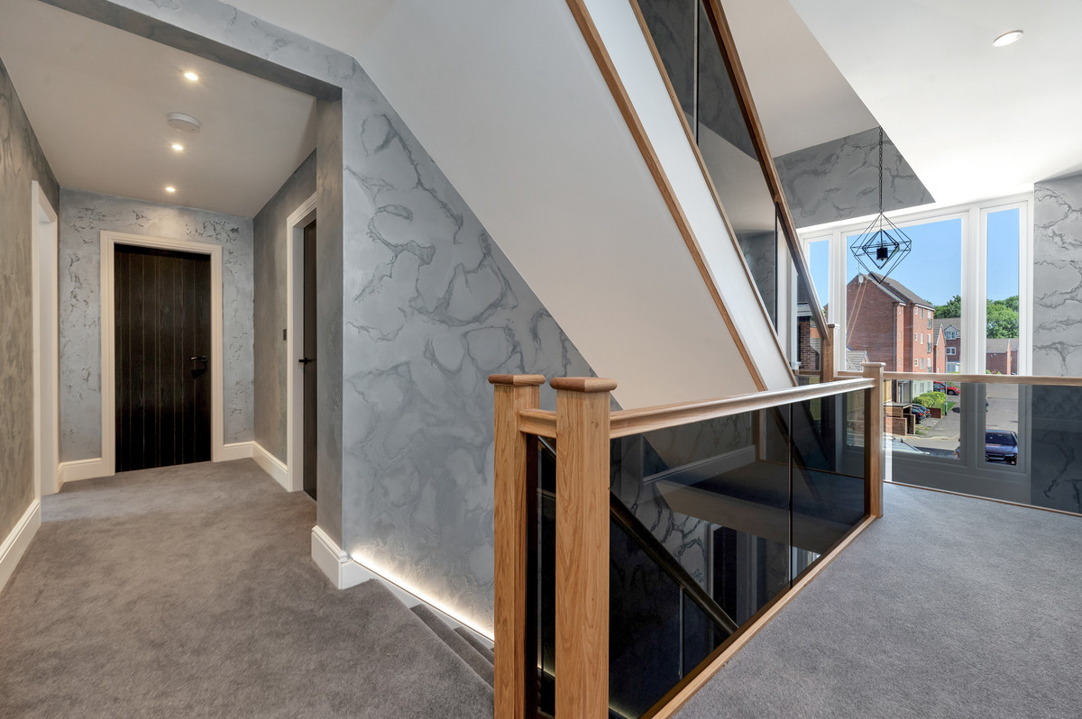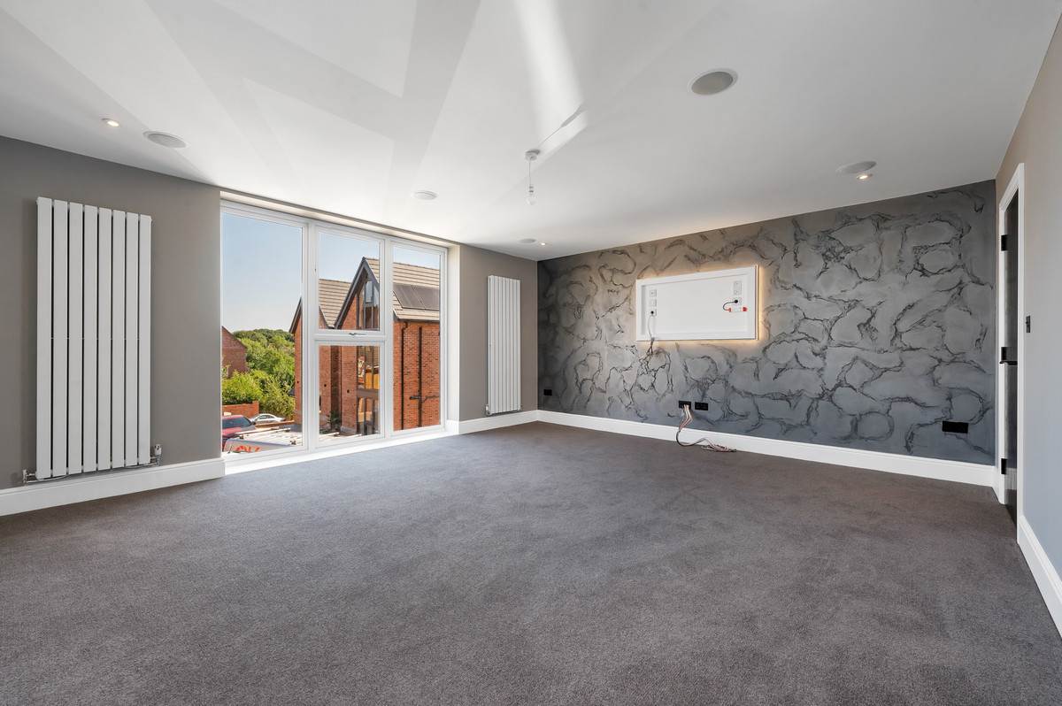 Upon entering the property, you are immediately greeted by a bright and inviting entrance hall with the feature oak staircase an early indicator of the quality found within. The majority of the principal ground floor accommodation leads off this hall which, in brief, comprises of; luxury open-plan living/ dining kitchen with feature fire and bi-folding doors onto the terrace, formal lounge, utility room, WC and internal access to the integral double garage. To the first floor, the spacious landing with full double height feature window gives access to the principal suite, an incredible space which enjoys a generous bedroom, fully fitted bespoke dressing room and a beautiful en-suite bathroom with double showers. There are two further double bedrooms and a family bathroom to this floor. On the second floor, you’ll find and additional 3 double bedrooms, an en-suite shower room, an independent shower room and a spacious store room which is incredibly useful for a home of this size.