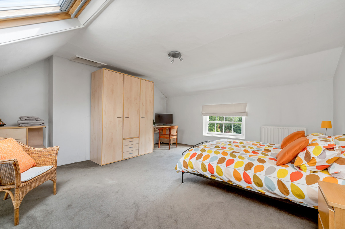 To the second floor are four attic rooms providing additional bedrooms or hobby rooms, sharing the use of a shower room.