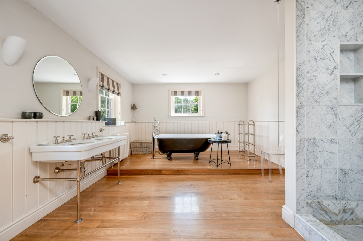 The first floor can be accessed from via two staircases. The more formal staircase rises to a central landing, giving access to the first-floor bedroom accommodation. The principal bedroom suite provides extensive accommodation with generous bedroom area, dressing room, walk in wardrobe, and large en-suite bathroom. The first floor also provides three further bedrooms, sharing the use of two high quality bathrooms. Completing the first-floor accommodation is a home office.