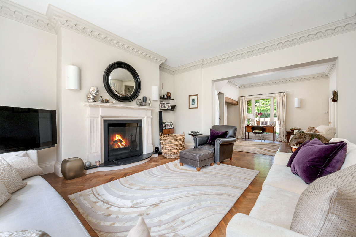 A traditional entrance door provides access to an entrance hallway proving an immediate indication to the calibre of this home, which in turn provides access to three reception rooms consisting of an inner entrance lobby giving access to a guest cloakroom, a fine drawing room, and sitting room. The elegant drawing room showcases parquet wooden flooring, open fireplace and features a bay window providing glorious garden views. It opens into a less formal study area with charming inglenook fireplace. Adjacent is a less formal sitting room/snug, a delightful room flooded with natural light and door providing access to the gardens.