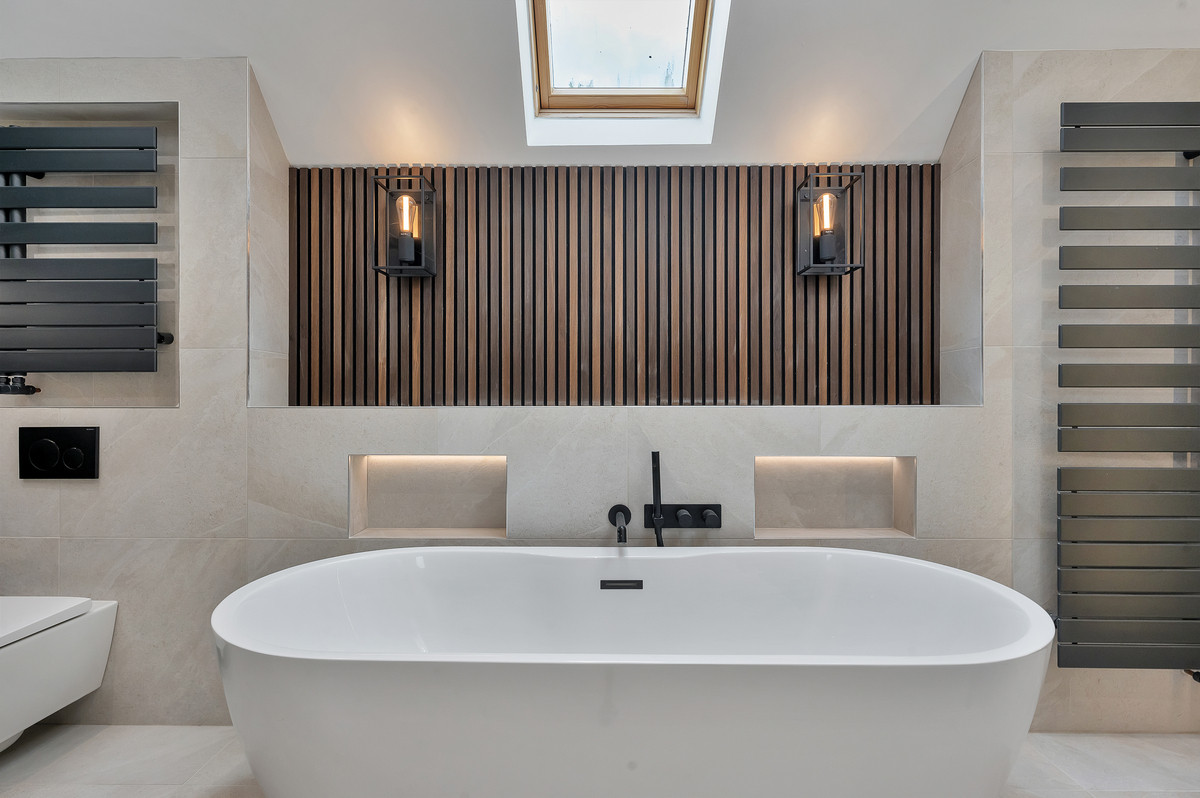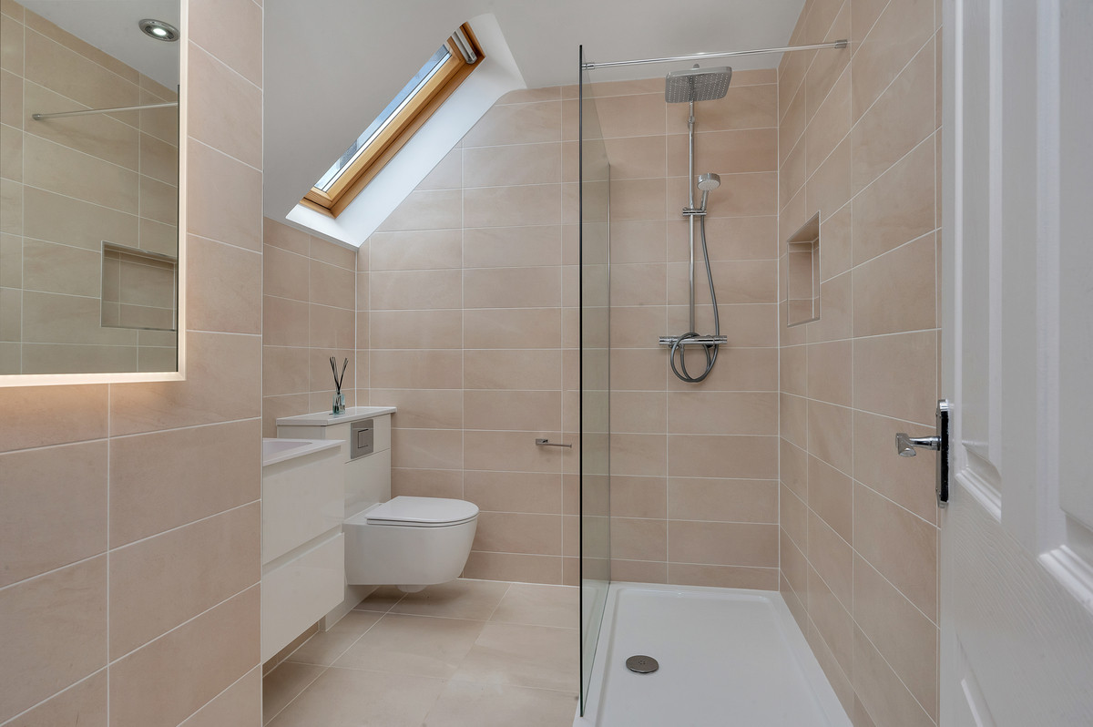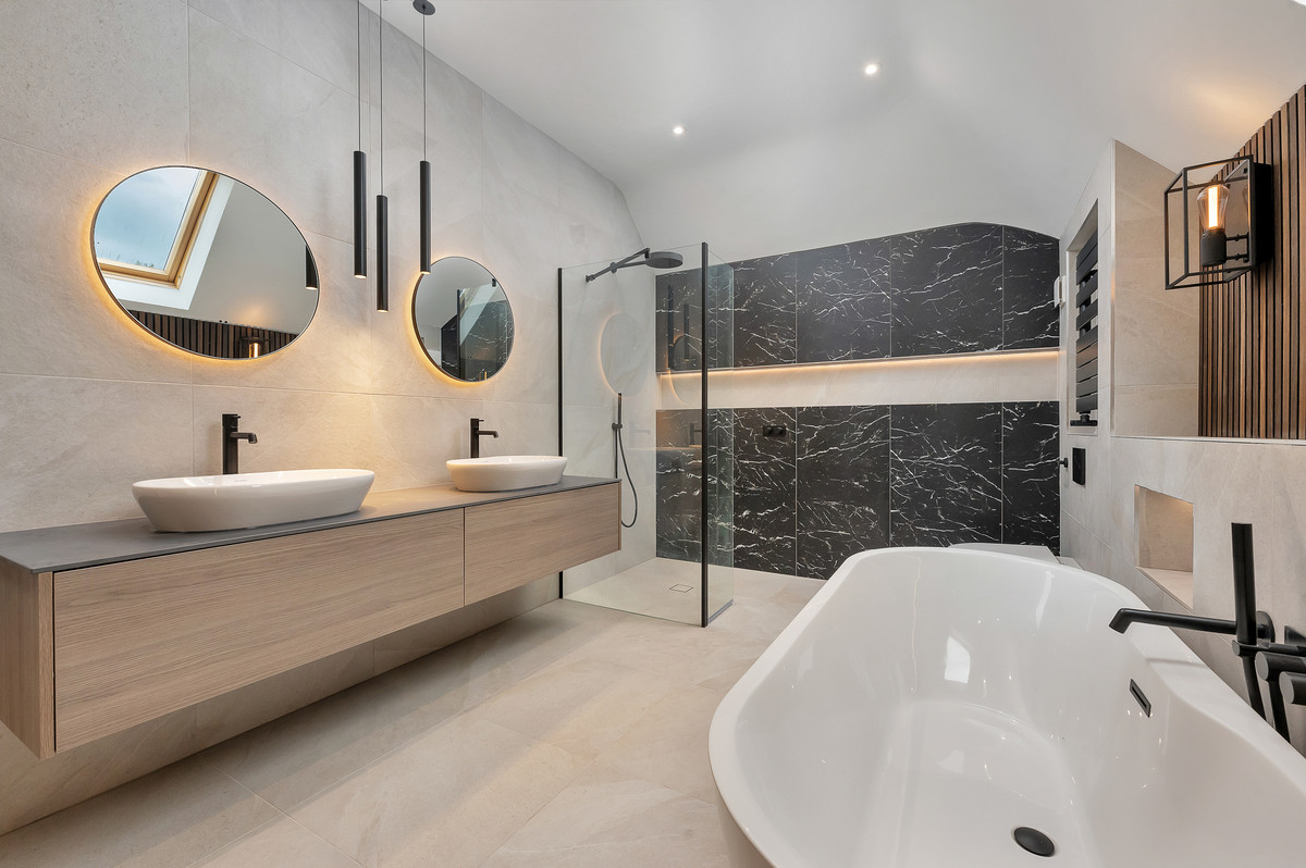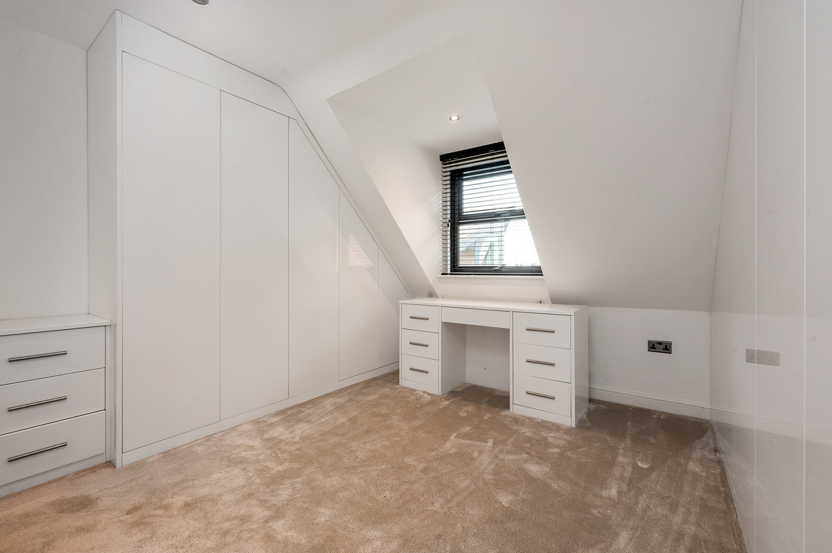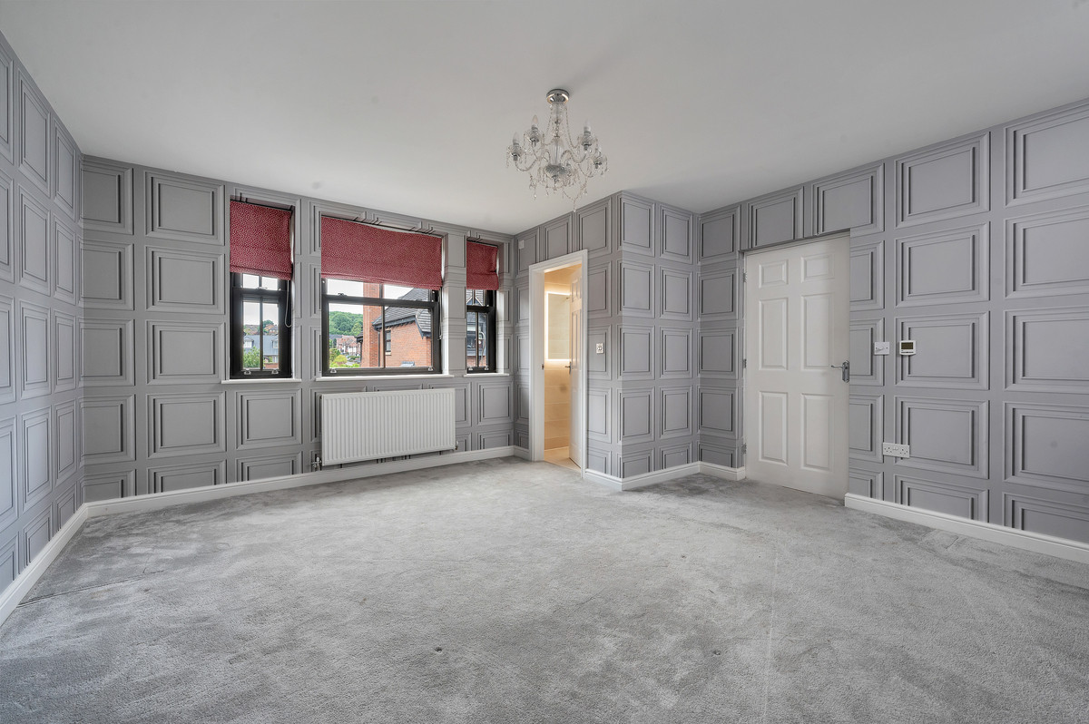 The spacious feel of the ground floor continues on the first, with a substantial landing giving access the accommodation found on this level. The principal suite offers a truly remarkable retreat, comprising of a very generous bedroom boasting a stunning vaulted ceiling and Juliet balcony, a first-class en-suite bathroom fitted to a beautiful standard and a separate dressing room with a range of fitted wardrobes/ cabinetry. Elsewhere you’ll find 5 further double bedrooms, 2 en-suite shower rooms and another stunning room designed by Stephen Christopher, the family bathroom.