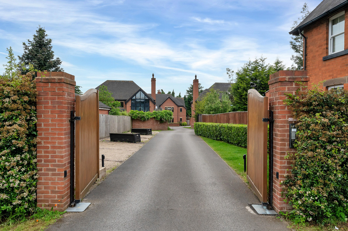 Constructed in 2010 to exacting standards and set behind a private gated entrance along with just two other homes, this property comes to the market offering space, facilities and a quality of finish rarely found on the open market. Boasting approximately 7634sq.ft of accommodation arranged across the main house and detached triple garage block, beautiful bespoke Stephen Christopher kitchen and bathrooms, under-floor heating to the ground floor, feature dual aspect wood burning fire, integrated SONOS surround sound, leisure facilities with an indoor swimming pool, cinema room, external sunken jacuzzi tub, a one bedroom independent apartment – just some of the outstanding highlights that separate this home from the rest and which make it the perfect home for entertaining in style.