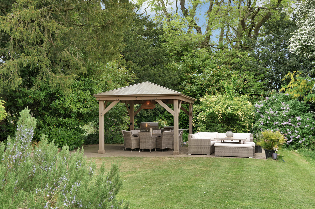 Externally, the property enjoys beautifully landscaped grounds to all sides which extend to circa 5 acres and comprise of 3 acres of field/ paddock, 1 acre of orchard and 1 acre of formal gardens. Upon entering the grounds via the electric gate entrance, you are greeted by the 3-acre field/ paddock which rises upwards to the house that sits at it’s top. An impressive sweeping 200m long driveway leads all the way along the field to the property, an enviable approach befitting of the home. Formal gardens wrap around the property which lend themselves perfectly for family use and entertaining with a substantial south facing patio, covered pergola with power and heating, and a number of fitted outdoor speakers creating the perfect space to sit and enjoy the stunning views. The 1-acre orchard provides a lovely area for growing and making use of the approximately 20 different varieties of fruit trees, such as apple, pear, mulberry, elderberry, plums and damson to name a few. The home benefits from extensive parking to two sides thanks to a substantial driveway as well as the attached double garage.