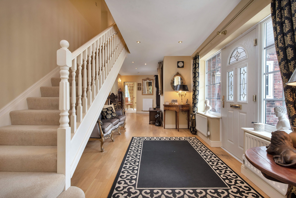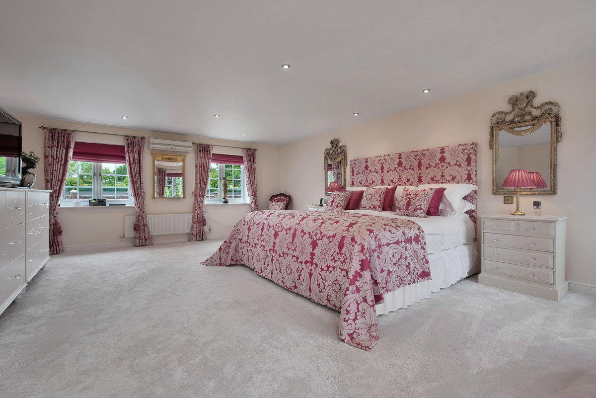The main house is spacious and immaculately presented, extending to approximately 5128 sq.ft with accommodation practically arranged over two floors. Upon entering the property, you are immediately greeted by a generous entrance hall which is befitting of the home and provides access to much of the ground floor accommodation that, in brief, comprises of; formal lounge/ music room with feature fire and 10ft high ceilings, a true ‘cooks kitchen’ with both dining and lounge areas, a dining/ sitting room, study/ snug, utility room and WC. In addition, a glazed corridor runs along the inner courtyard and provides access to a stunning heated indoor swimming pool which enjoys lounging areas, underfloor heating, shower facilities and separate plant room for ease of maintenance.