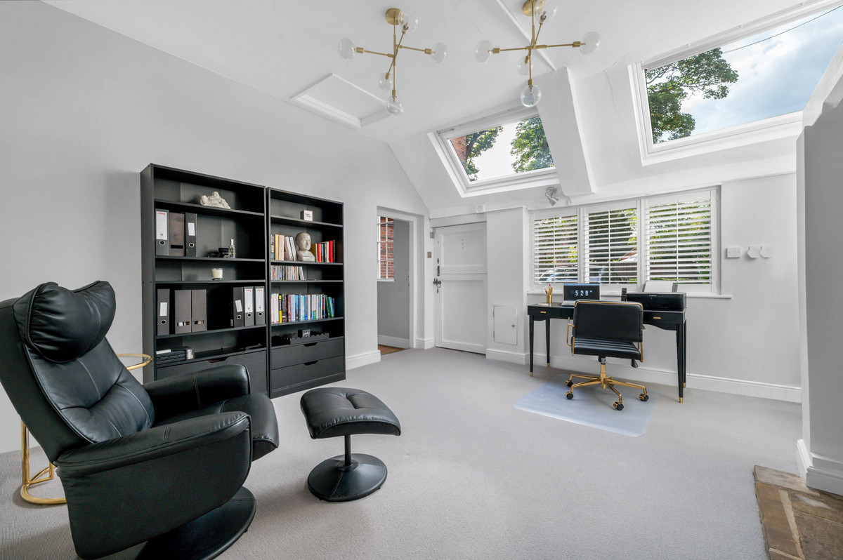The first staircase continues to the second floor, where a landing gives access to two generously proportioned bedrooms set to the front of the house, as well as a connecting door through to the rear landing and second staircase. From here, further accommodation unfolds, including a third bedroom which opens into a spacious additional room—an ideal private retreat for a teenager, studio, or hobby space. A fourth bedroom and a well-appointed bathroom complete this level, which, like the rest of the home, offers outstanding flexibility for a growing family or those seeking versatile spaces tailored to modern living.