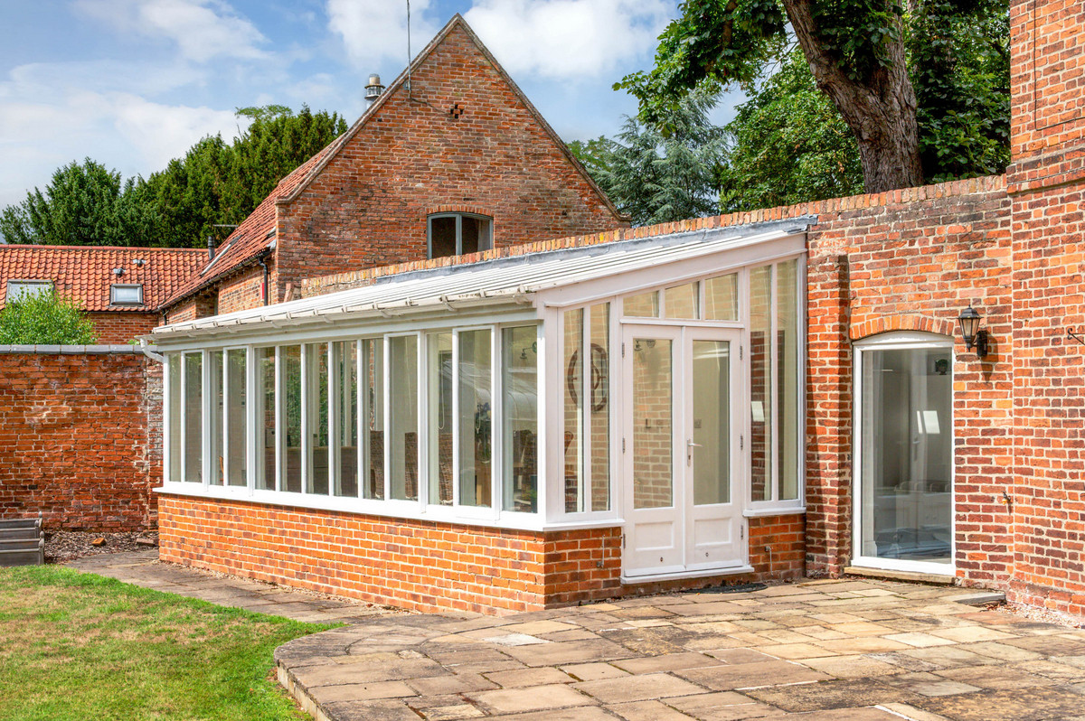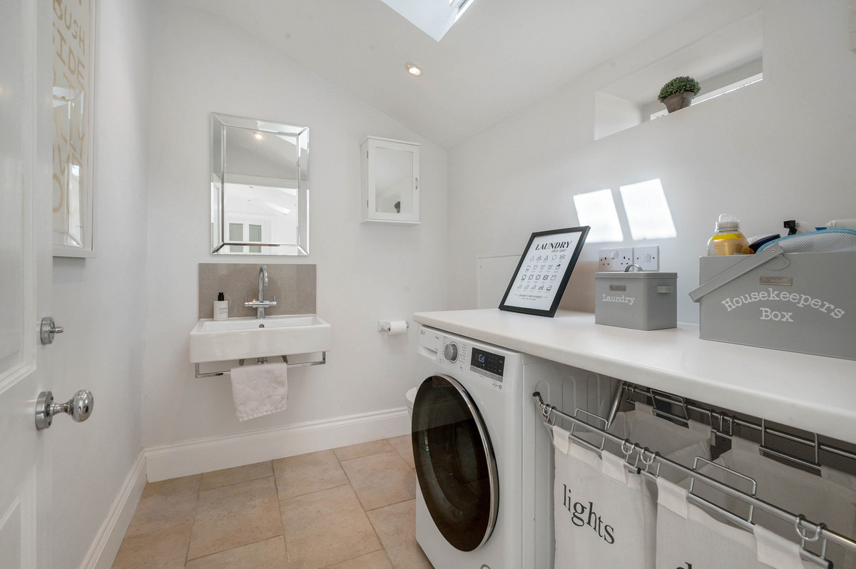 The conservatory is perfectly positioned to overlook the walled garden, with French doors opening directly onto the terrace. Bathed in natural light, it provides a delightful setting for dining, entertaining, or simply relaxing, while also offering convenient access to the laundry room with additional storage.