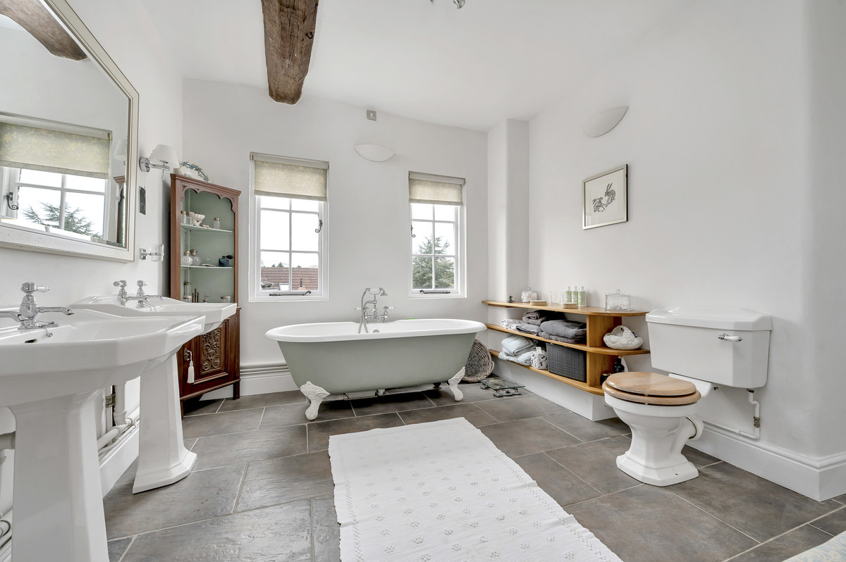 A traditional staircase rises to the first floor where a split-level landing leads to five good sized bedrooms. To the front are two generously proportioned rooms with a fine array of original features including heavily beamed ceilings. Three further bedrooms continue to the rear, one of which has the benefit of an adjacent dressing room / study. All bedrooms on this level share the use of a high quality house bathroom and separate shower room.