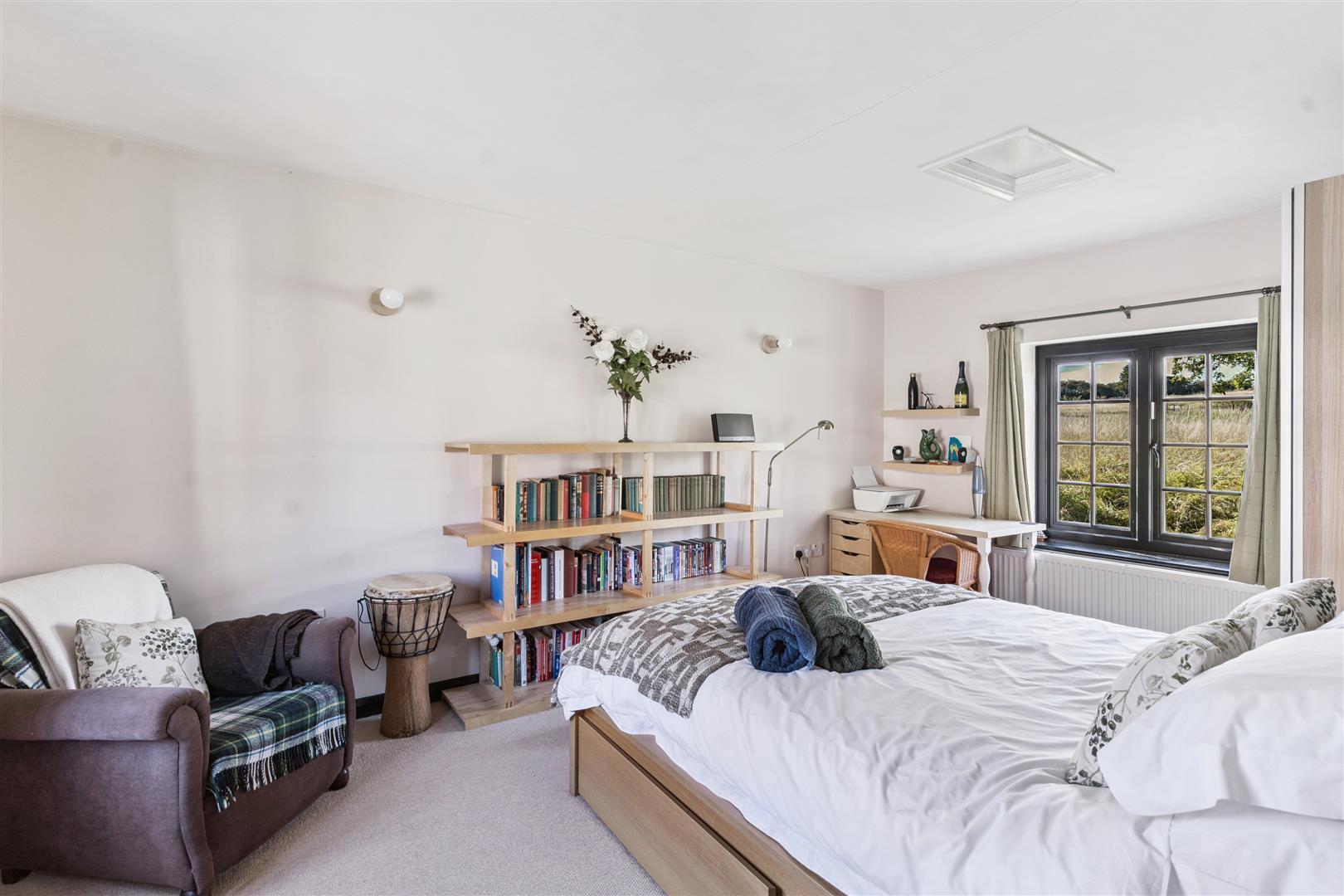 A solid wooden door opens to an entrance lobby with tiled flooring and a cloakroom adjacent to a built in storage cupboard. Off to the right is the sitting room having a vaulted ceiling and attractive open fireplace over a tiled hearth. To the front elevation of the sitting room is a small pane bay window with two additional windows to the side. Retracing our steps, we move towards the kitchen and utility room. The beamed kitchen has a good range of cupboard units at floor and high levels and a sink unit strategically placed to take in the countryside views from the window on the rear elevation. Alongside is a utility area also with a sink unit and plumbing for a washing machine. Nearby is an extensively tiled shower room with WC and washbasin. A small lobby leads to the dining room bathed in natural light from the double aspect windows whilst being steeped in character with a stone fireplace and beamed ceiling. Off the dining room is a very cosy and comfortable study with exposed stonework to the walls and an open fireplace. Working from home? How lovely to imagine the contentment it would bring to have a fire burning away in the hearth on a bleak winters day. Beyond the study there are two double bedrooms completing the ground floor accommodation both having views over open countryside.