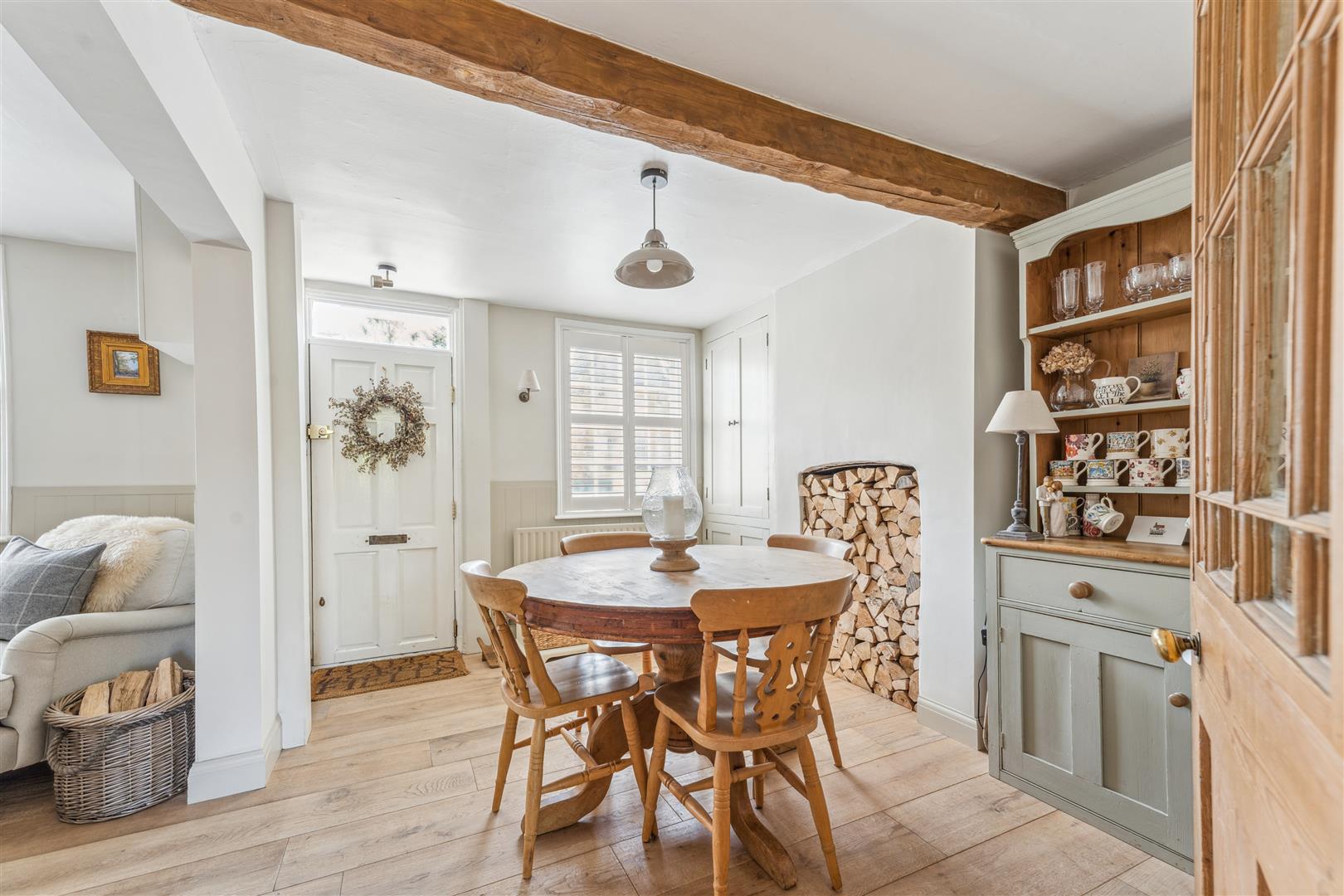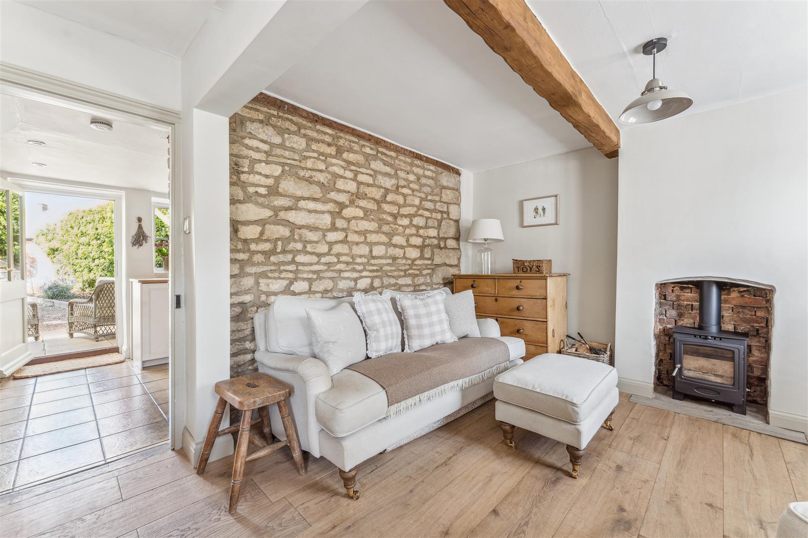 This Grade II Listed property boasts several notable character features, in particular exposed beams to the ceiling, exposed stonework and an open fireplace housing a wood burning stove. Wood panelling is visible in several rooms around the property and there are bespoke blinds fitted to most windows.