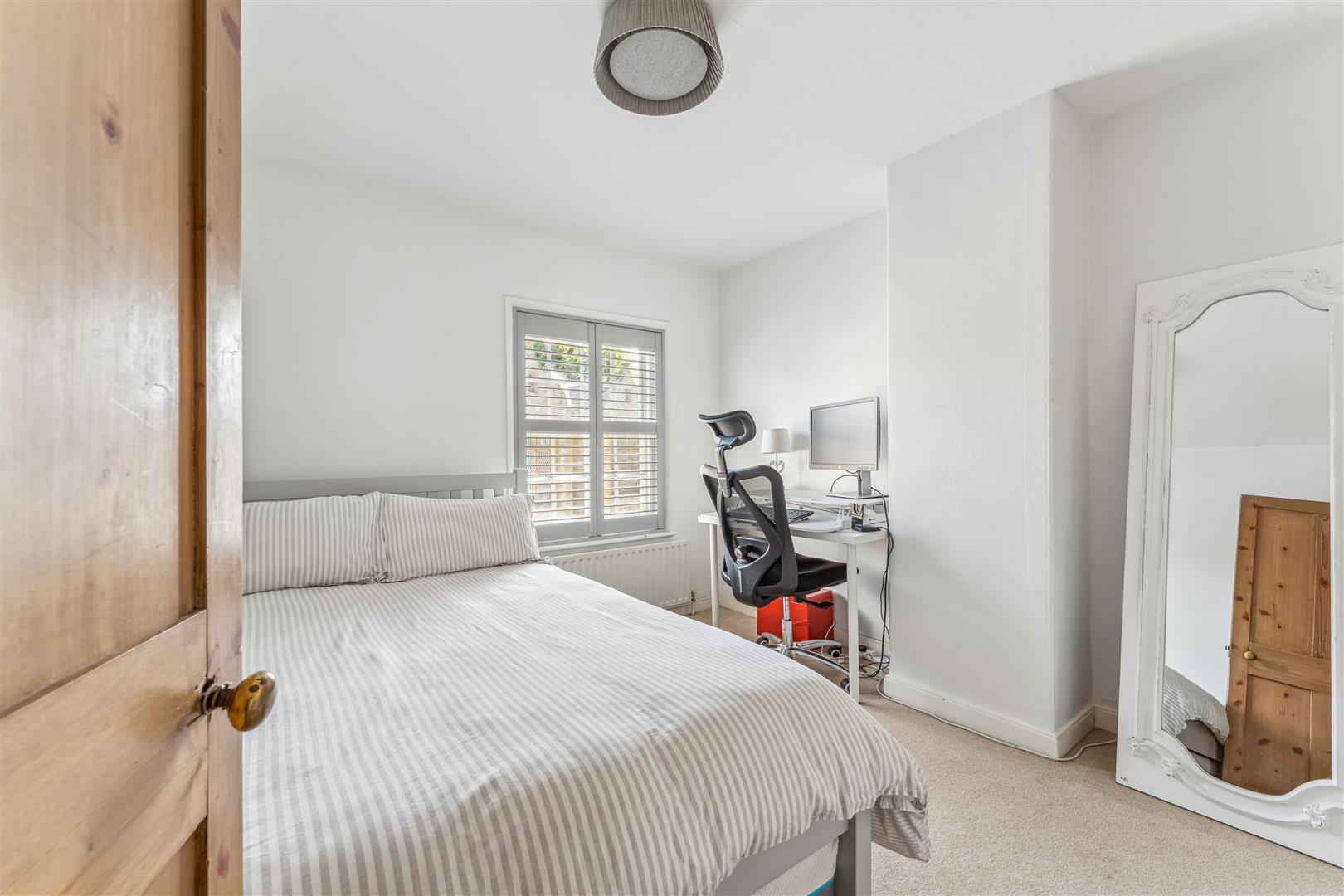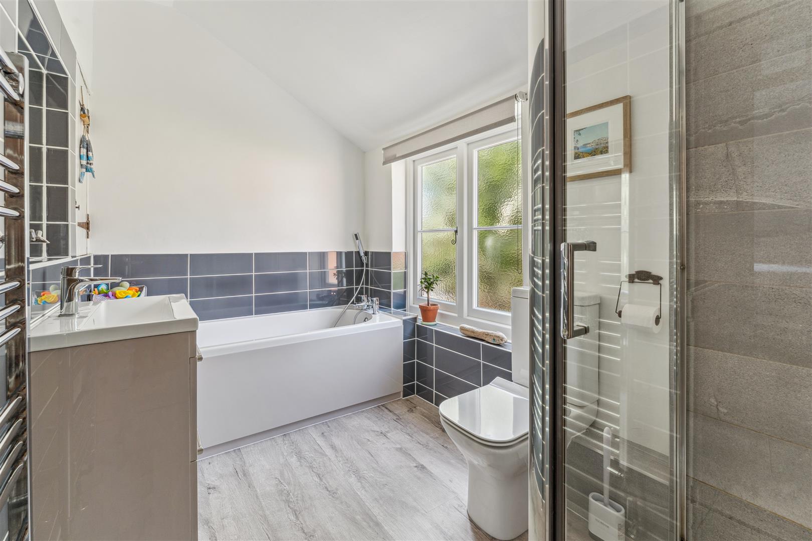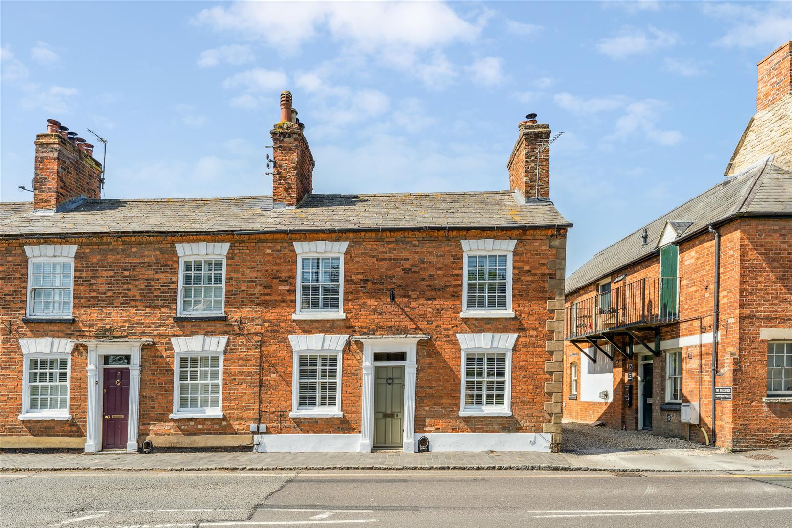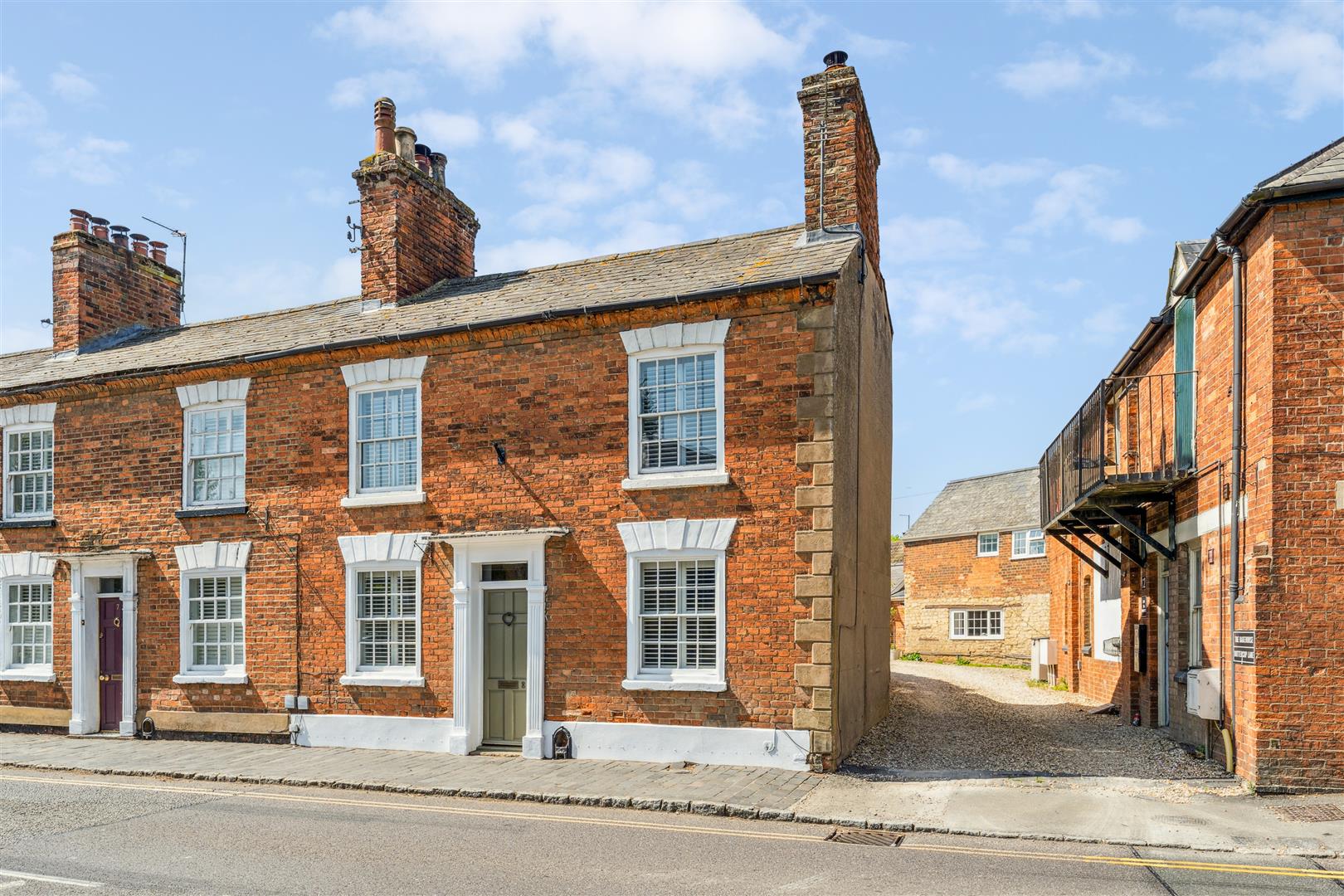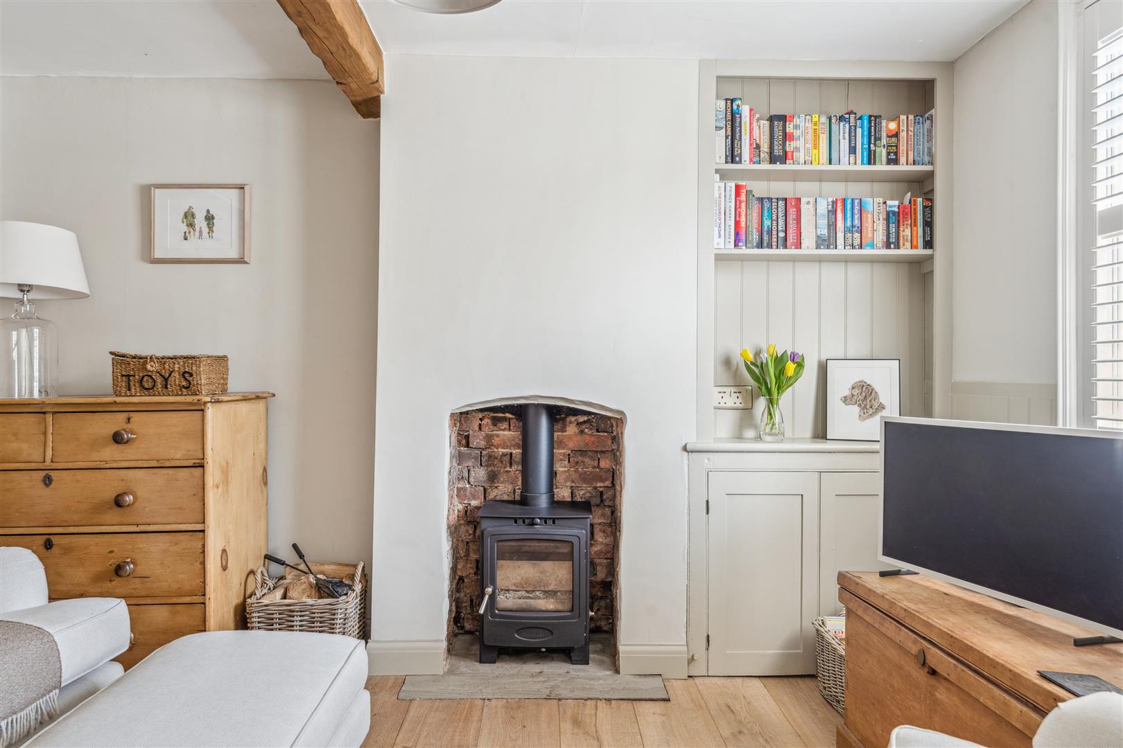 A solid wooden door opens into the sitting room and dining room. The sitting room has a fireplace to one wall housing a wood burning stove whilst alongside are attractive built in cabinets and shelving. Exposed stonework is visible to one wall and there are exposed beams to the ceiling. The window on the front elevation is secondary glazed with bespoke custom fitted blinds. These are fitted to the majority of the windows in the property. The dining room has a former fireplace now performing usefully as a log store. There are built in cupboards to the recess areas and half height wood panelling arranged along one wall. A part glazed door opens to the kitchen at the rear of the property. The kitchen offers a vast array of cabinets arranged to base and high levels. A "Butler" sink stands under a deep sill window looking into the garden. A dishwasher is integrated to the kitchen. The walls have exposed stonework in areas and the flooring is tiled whilst there is recessed lighting to the ceiling. A door opens into the garden and a staircase rises to the first floor and the bedroom and bathroom accommodation. There are three bedrooms, two of which have retained former fireplaces as interesting features. Two of the bedrooms also have areas of wood panelling to the walls and the two bedrooms to the front have secondary glazing. The family bathroom has a panelled bath with shower attachments, WC and wash basin with vanity cupboards under. Tiling is applied to the splash areas and there is an integrated wall mounted mirror. A shower cubicle stands independently and a ladder radiator is mounted to one wall.