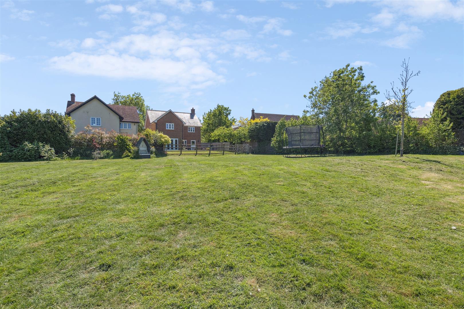 To the rear there is garden immediately behind the house with a large patio where there is external lighting. This more formal area of garden extends towards post and rail fencing which gives it definition at the rear, then beyond is a larger parcel of land which is also designated for garden use although could accommodate a small pony.