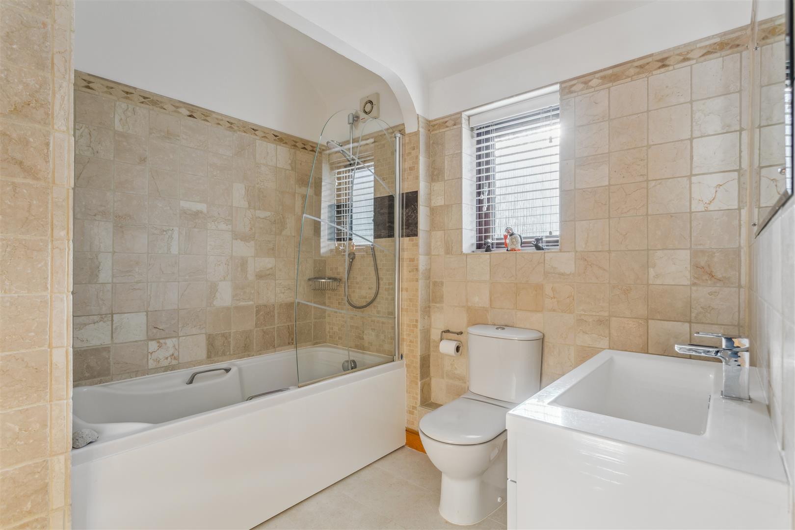 The kitchen/breakfast room is very well proportioned entirely floored in York slate tiling. There are an extensive range of cabinets arranged around the floors and walls some with glazed fronts. Integrated to the kitchen are a dishwasher, two ovens and a hob unit. A central island unit provides good work surface space and additional cupboard units. Double doors open to the garden from the breakfast area. A useful utility room lies adjacent to the kitchen, plumbed for a washing machine and with housing for a fridge/freezer.