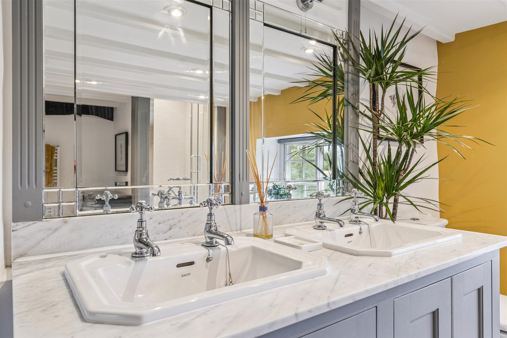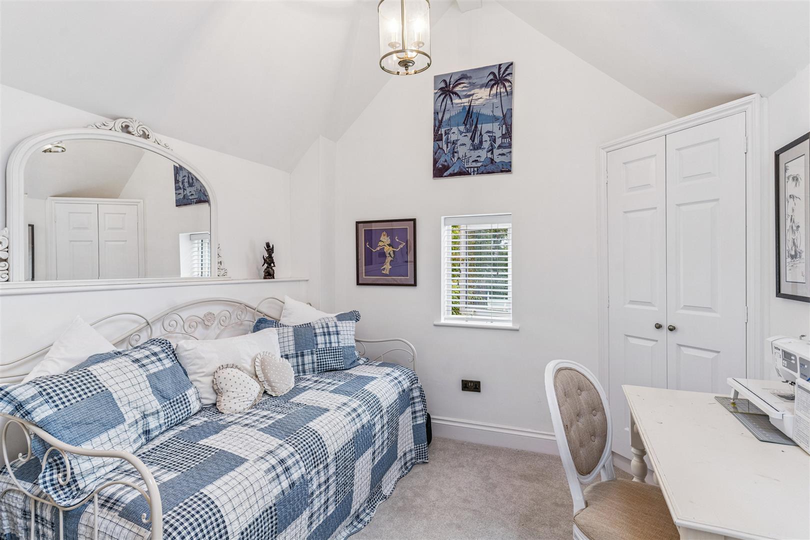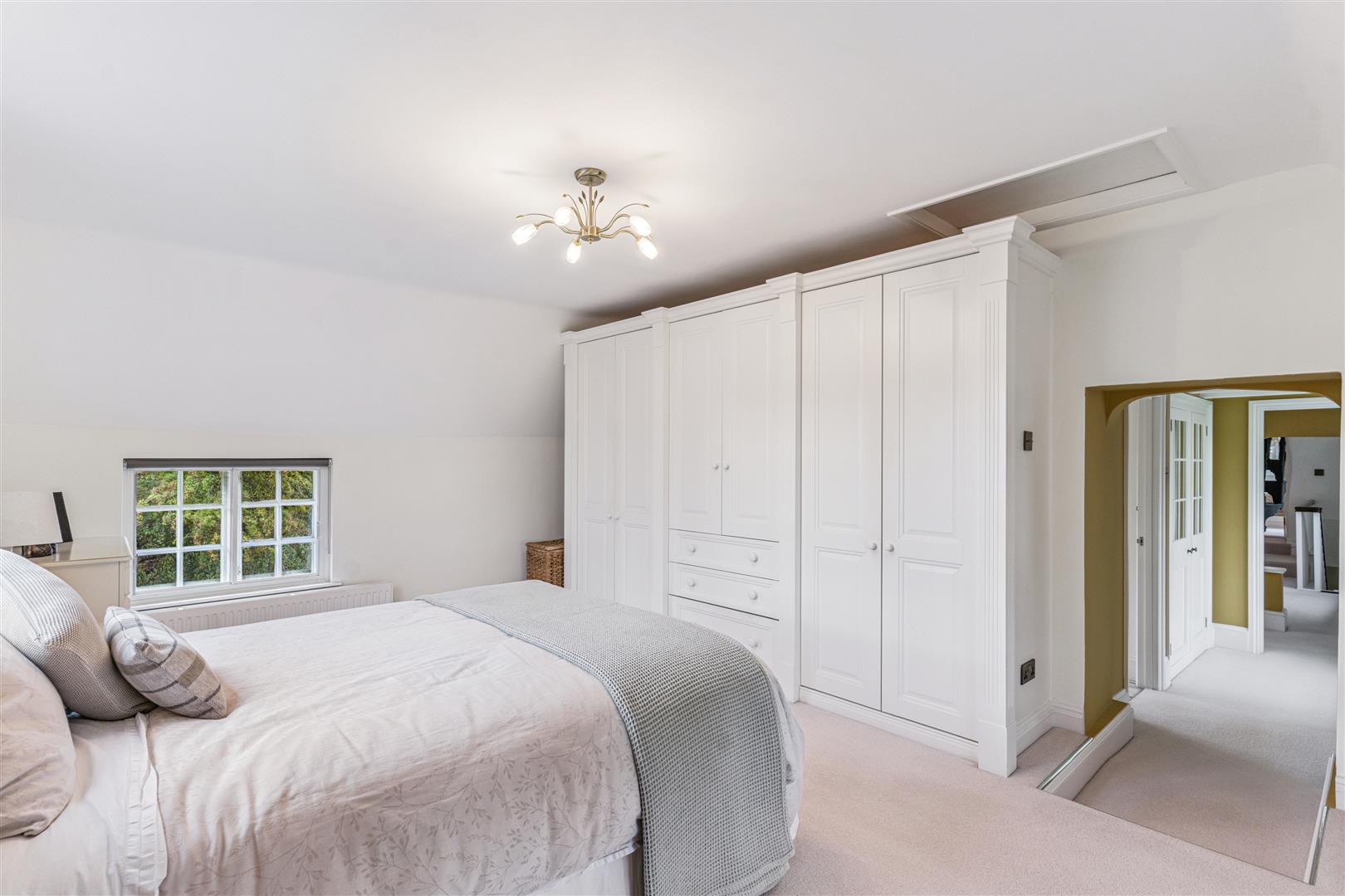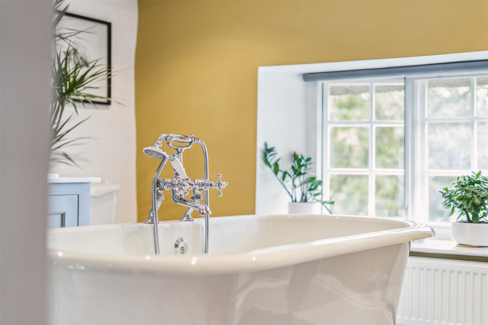 The main staircase from the reception vestibule rises to a spacious first floor landing area from where an open spiral staircase gives access to a full height boarded and carpeted attic room ideal for storage or perhaps for use as a play area. From the main landing there is access to three further bedrooms. The Master bedroom has a luxurious "Jack and Jill" en suite bathroom. This bathroom has a centrally located roll top bath and hand held shower attachments. The bath is mounted on ball and claw pedestals. Additionally there are twin wash basins encased within a vanity unit which has a mirrored backdrop and lighting, WC and an independent shower cubicle. The guest bedroom is a good size double room, also with an en suite shower room and there is a further double bedroom.
