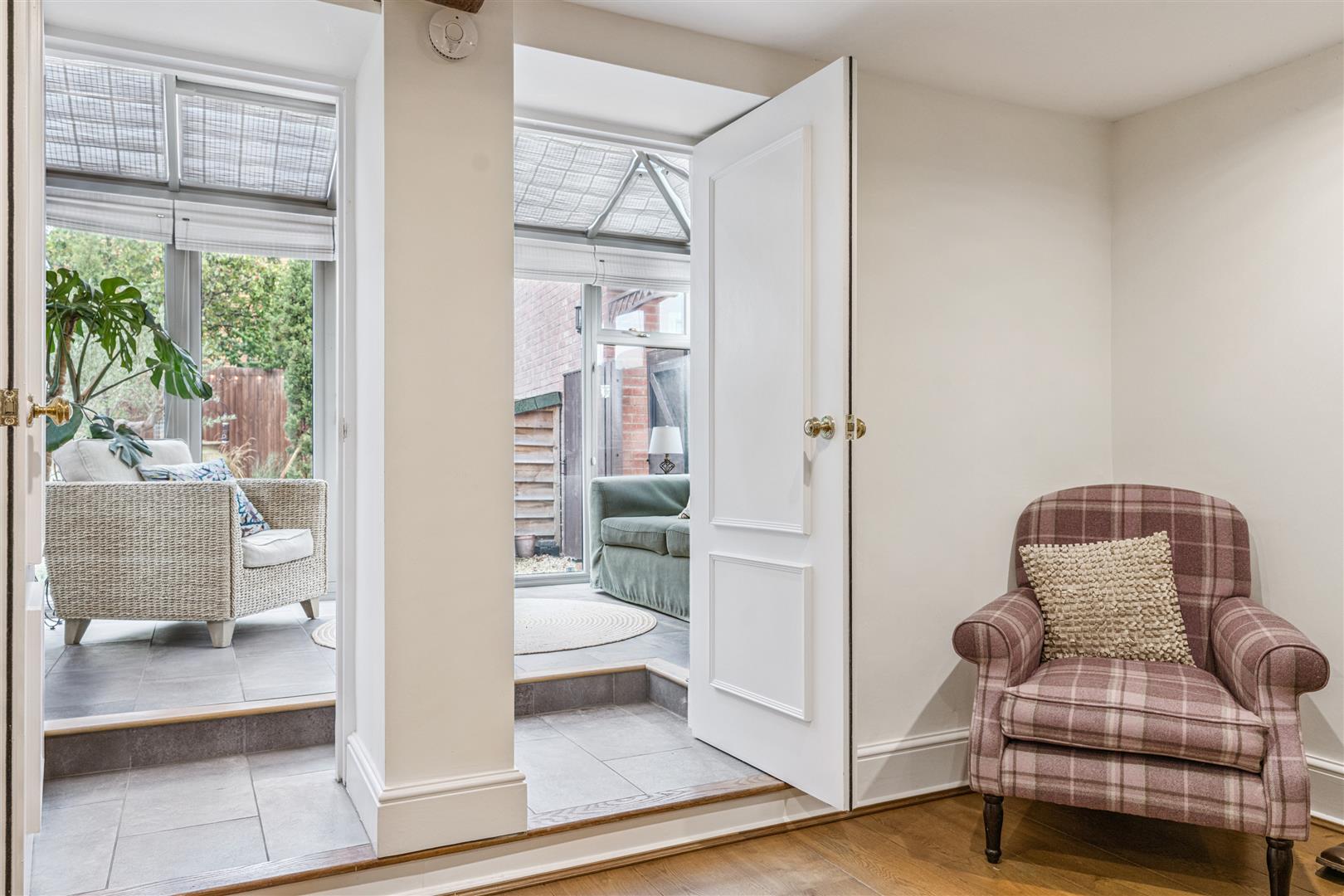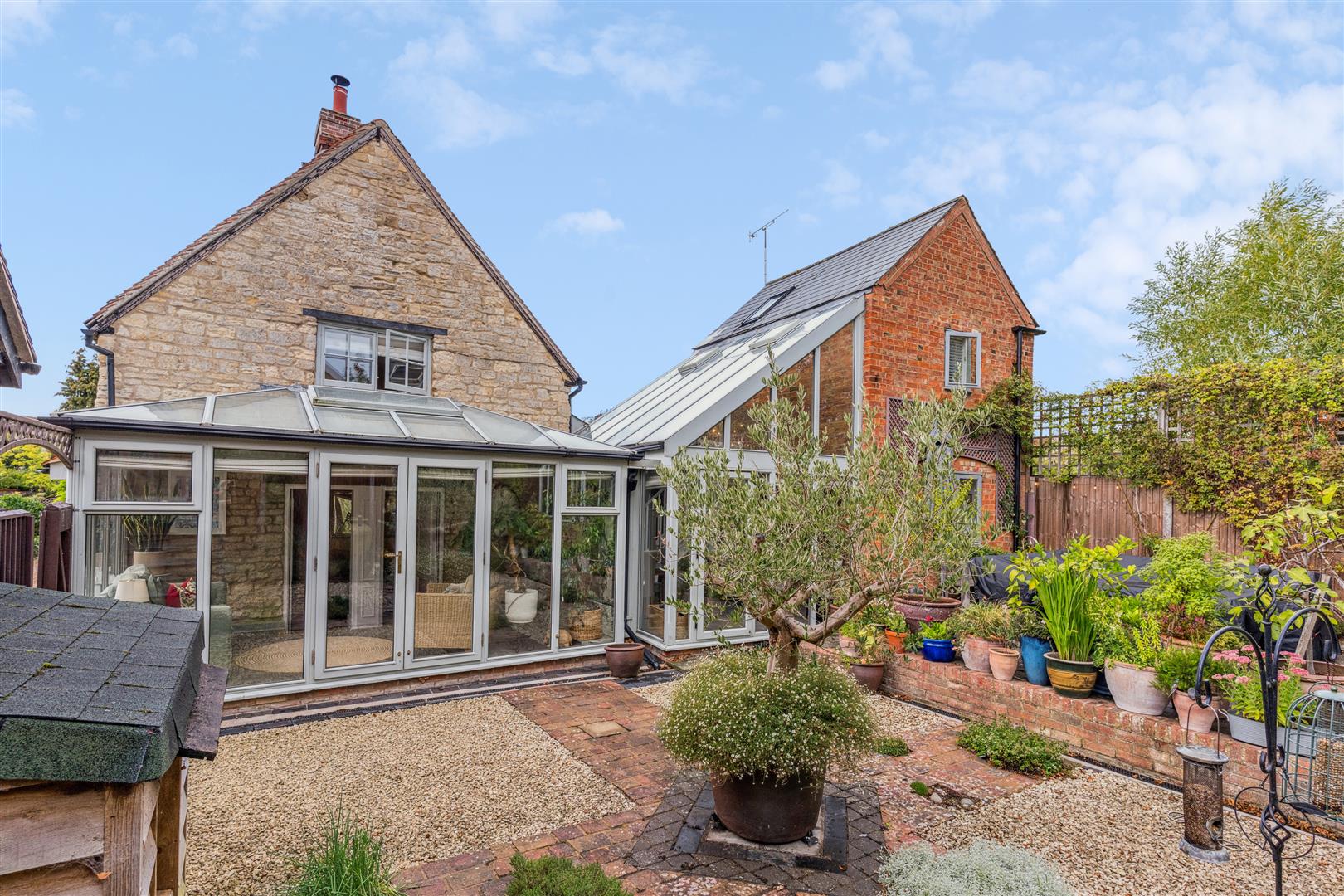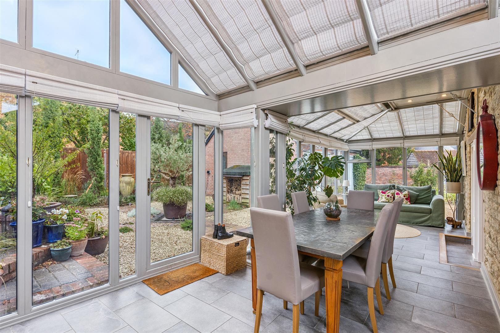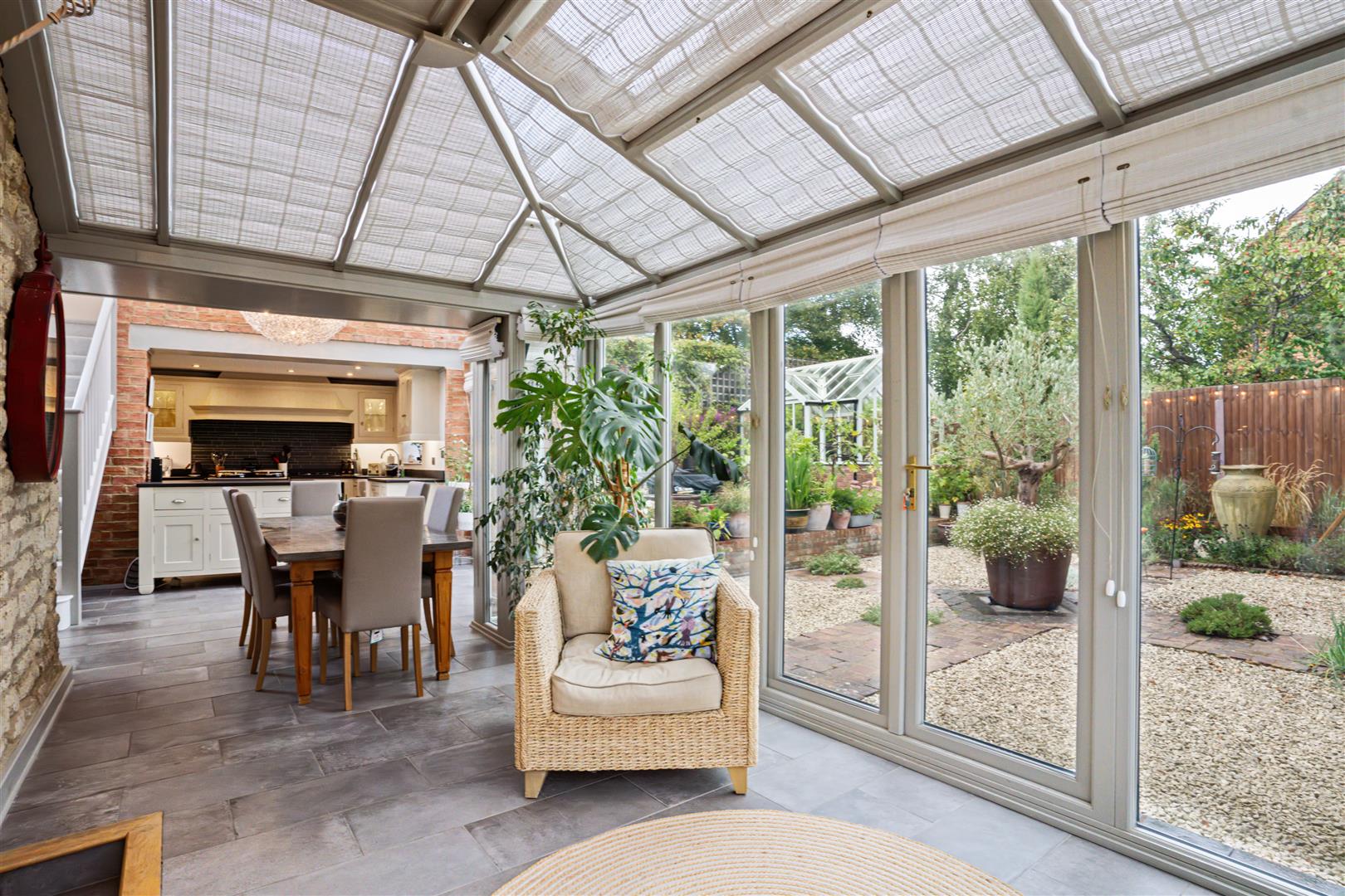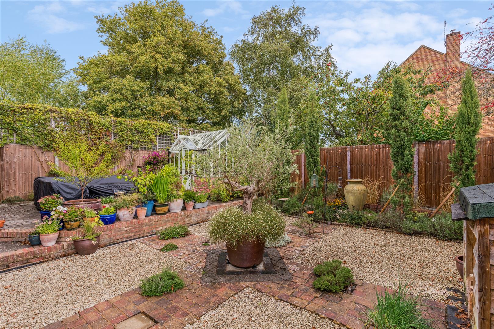 A solid wooden gate opens to a private and sheltered garden bounded by high fencing and located directly behind the garden room. This enclosed area is an absolute sun trap with patio areas created from blue brick paviours with red brick definitions. This area of garden is hard landscaped over two tiers and has a "Victorian" style greenhouse at its higher level, flower beds and a wood store. Having direct access from the delightful garden room this creates an ideal entertaining space for friends and family whilst offering complete privacy and seclusion.
