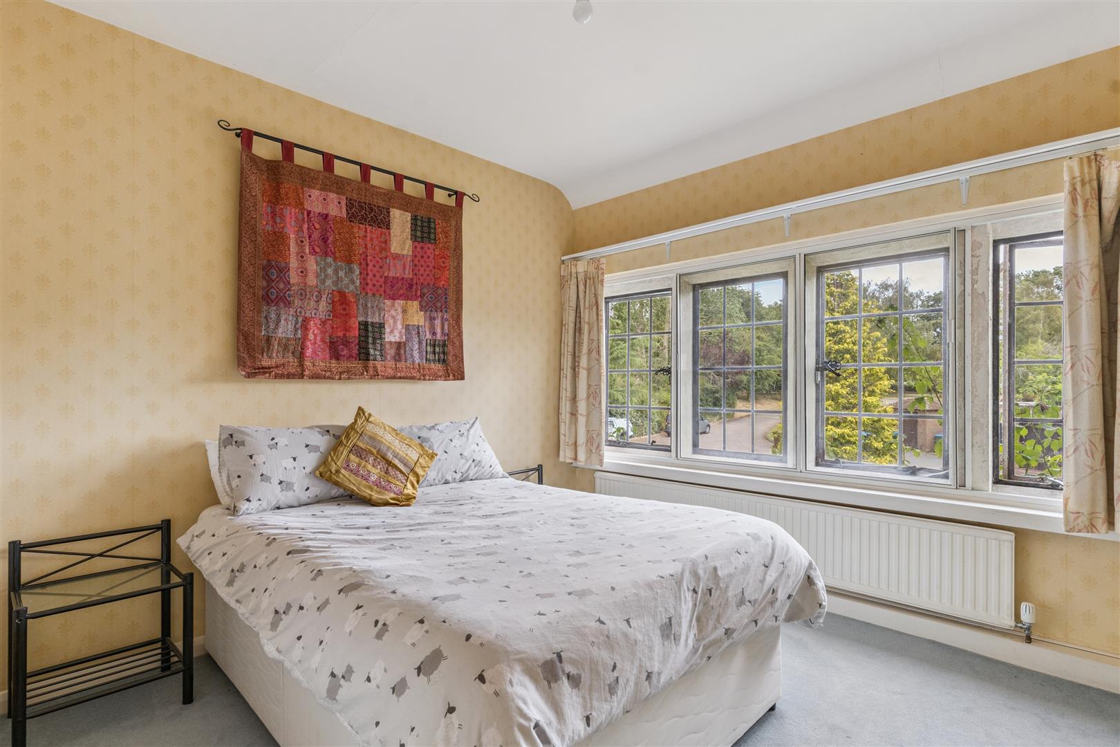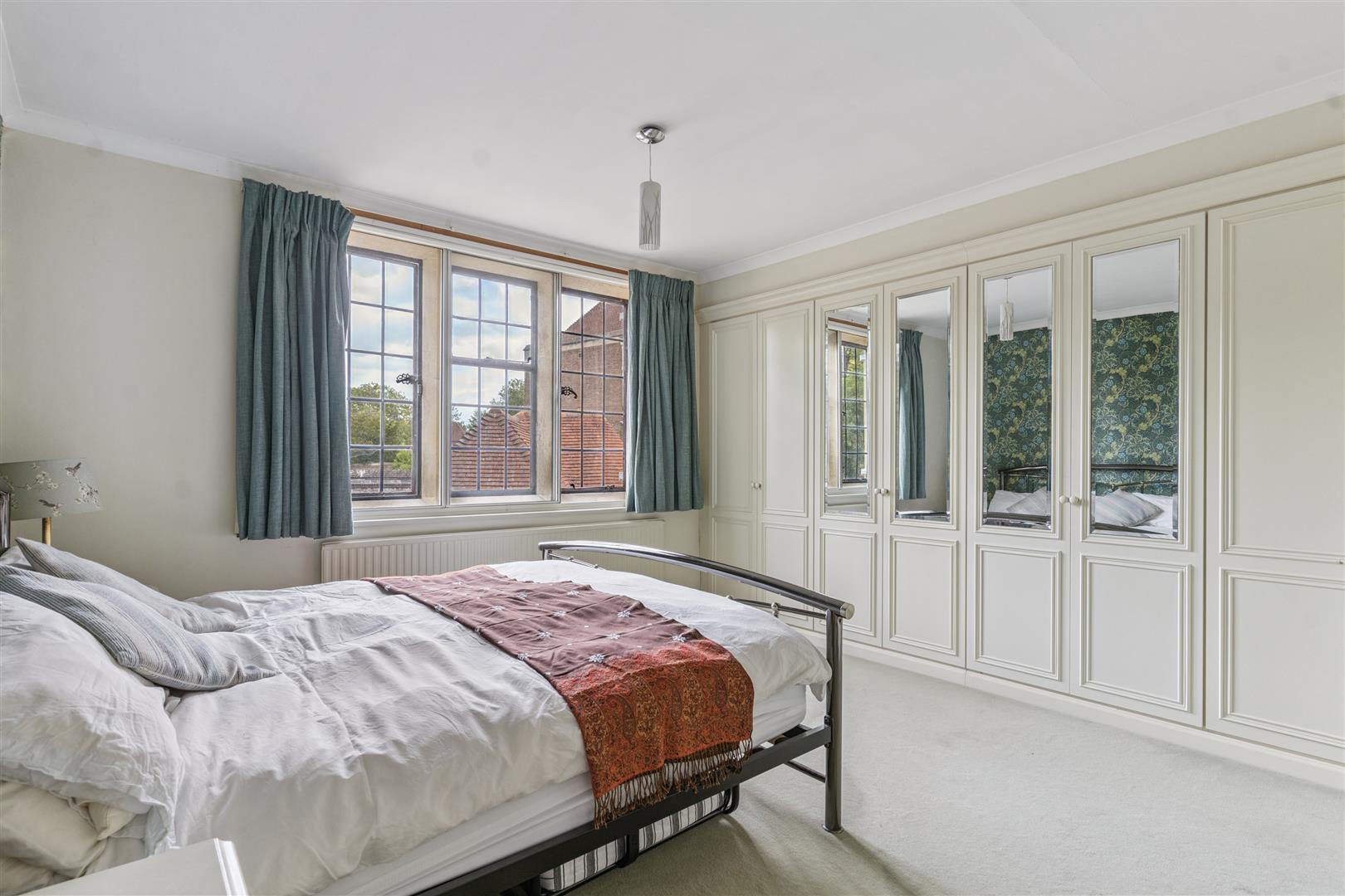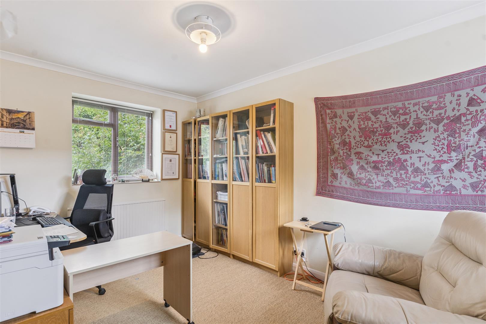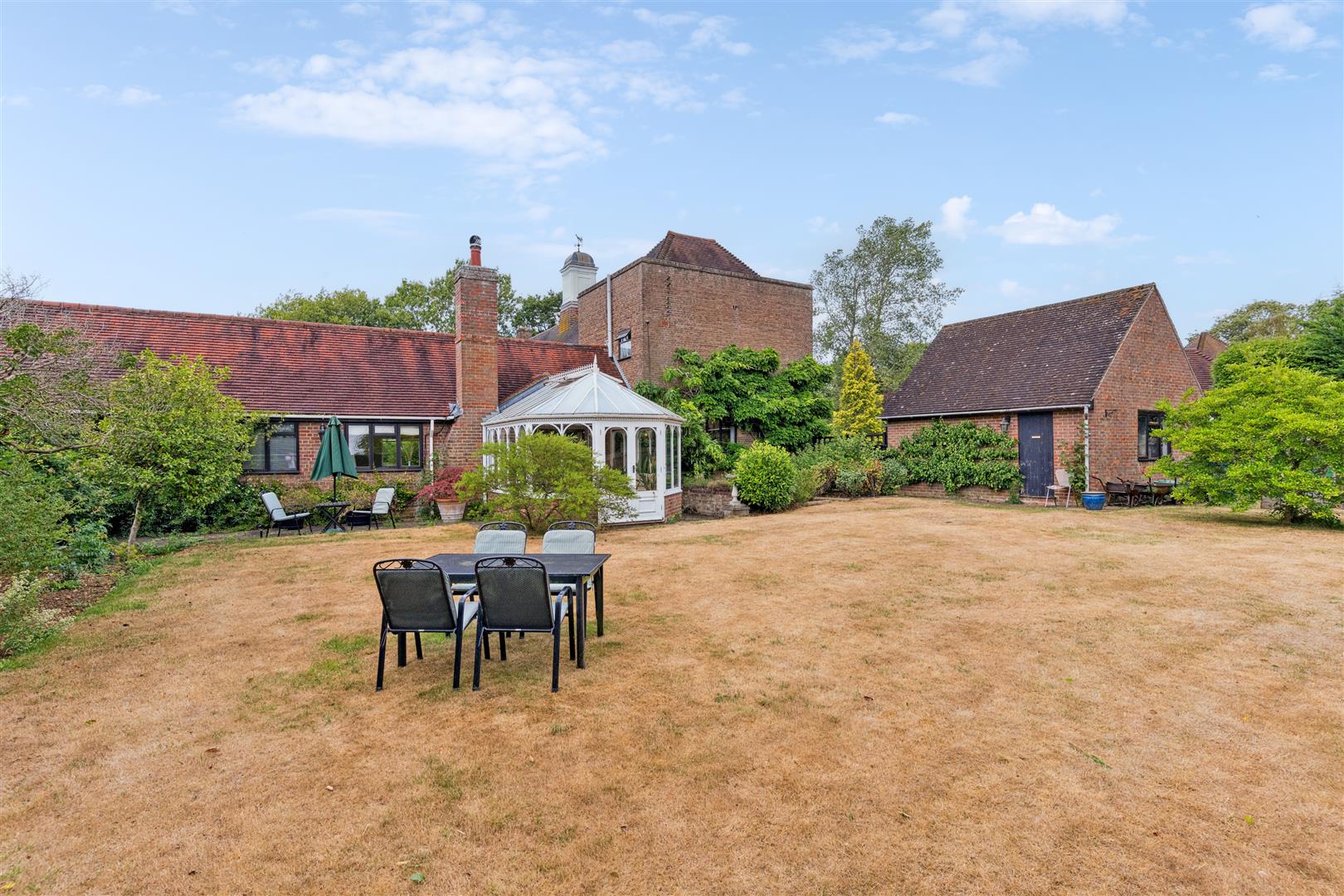 The garden is south facing and has a pathway down to a lawn area bordered by flowers and fruit beds. Two wisterias cloak the side of the building and an espaliered Conference Pear tree clings to the side of the double garage. A Magnolia Stellata features prominently in the garden. Additional features are a pergola over raised decking and various seating areas.