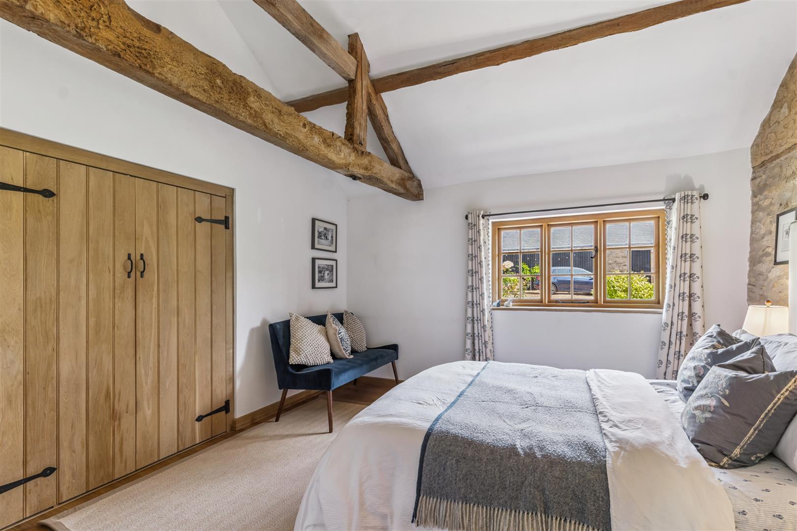 The Master bedroom has exposed stonework and brickwork to the walls and exposed beams and roof trusses. There is a walk in wardrobe and glazed doors open to the garden area. En suite to this Master Bedroom is a fully tiled shower cubicle, plunge bath with shower attachments, WC and wash basin. Two additional double bedrooms are located on the ground floor both with fitted wardrobes. The family bathroom has an interesting feature with an original red brick chimney rising from floor to ceiling. within the bathroom there is a roll top bath with shower attachments mounted on ball and claw pedestals, walk in tiled shower cubicle, wc and wash basin.