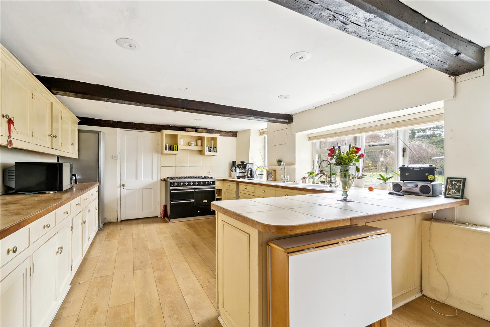 From the front elevation, enter through a 6 panel door to a lengthy entrance hall running from the front to the back of the property where another door opens into the garden area. A cloakroom is located off the hallway. The sitting room is of spacious proportions with an inglenook fireplace to one wall. The ceiling is beamed and there are secondary glazed windows to the front elevation. The snug is on the opposite side of the hallway with a currently unused fireplace, beamed ceiling and secondary glazed window to the front. A doorway connects to the kitchen. The kitchen/breakfast room has a vast array of cabinets to base and high levels. A double bowl sink unit with mixer tap is integrated to tiled work surfaces. A range of secondary glazed windows are arranged along one wall with exposed beams to the ceiling. Doorway to a utility room where the gas fired boiler is sited. This room was formerly used for brewing and the equipment remains should it be of interest. A door opens into the garden.