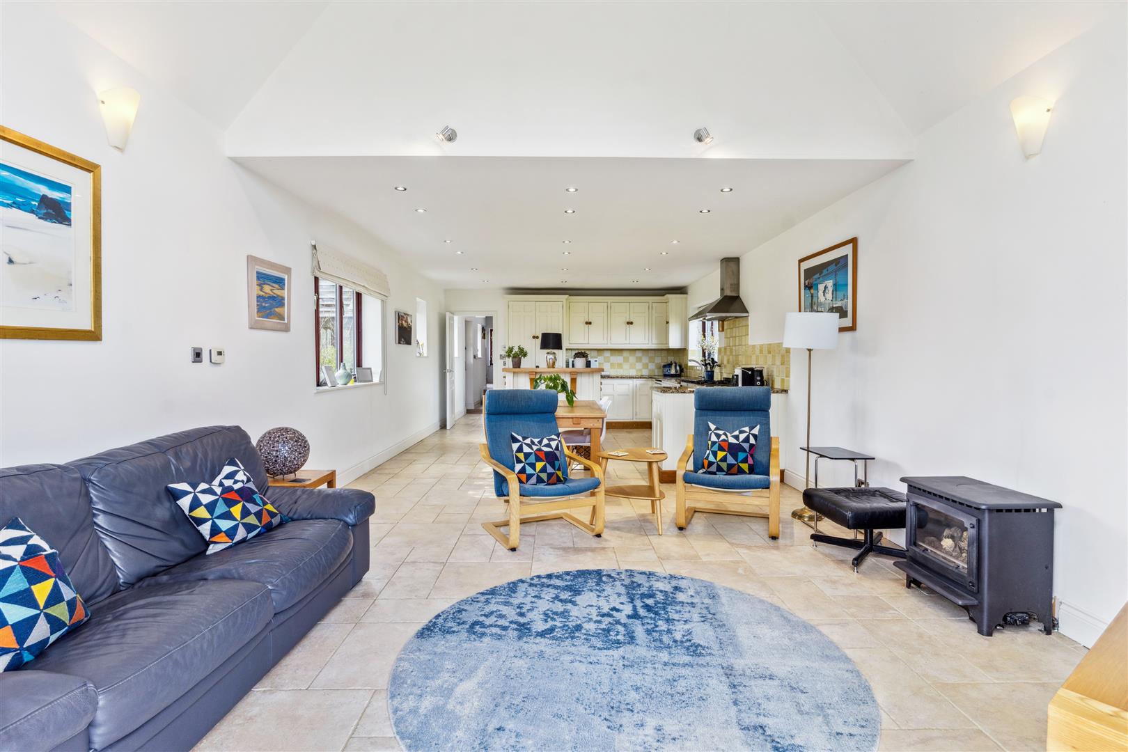 Approaching the property there is parking available for a multitude of vehicles with an extensive gravel parking area fronting the double garage. The wraparound gardens enable the owners to find sunshine at any hour of the day with patio areas facing in an easterly direction to attract the morning sun and south and west in the vicinity of the pond to enjoy late afternoon and evening warmth. There are various established beds and flower borders well stocked to include an ornamental pear tree, buddleia, wisteria, crocosmia and pond roses. There is also a further area of garden with a cedar greenhouse and vegetable beds.