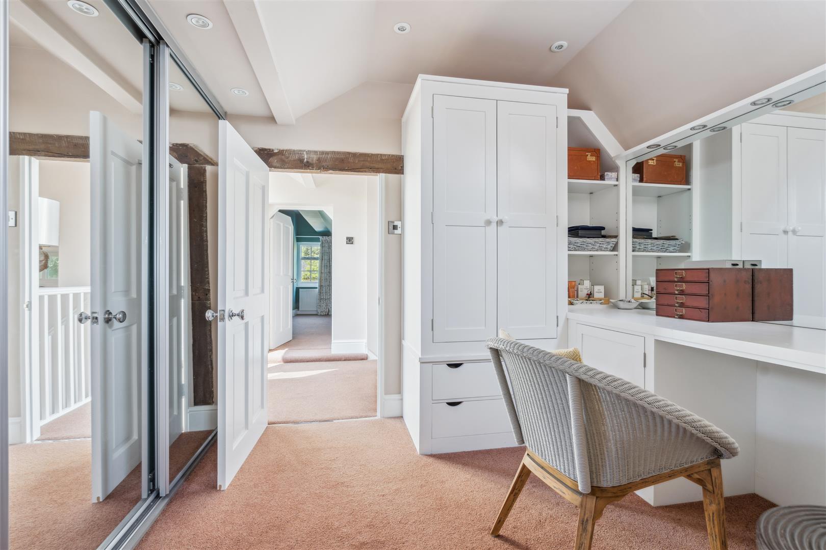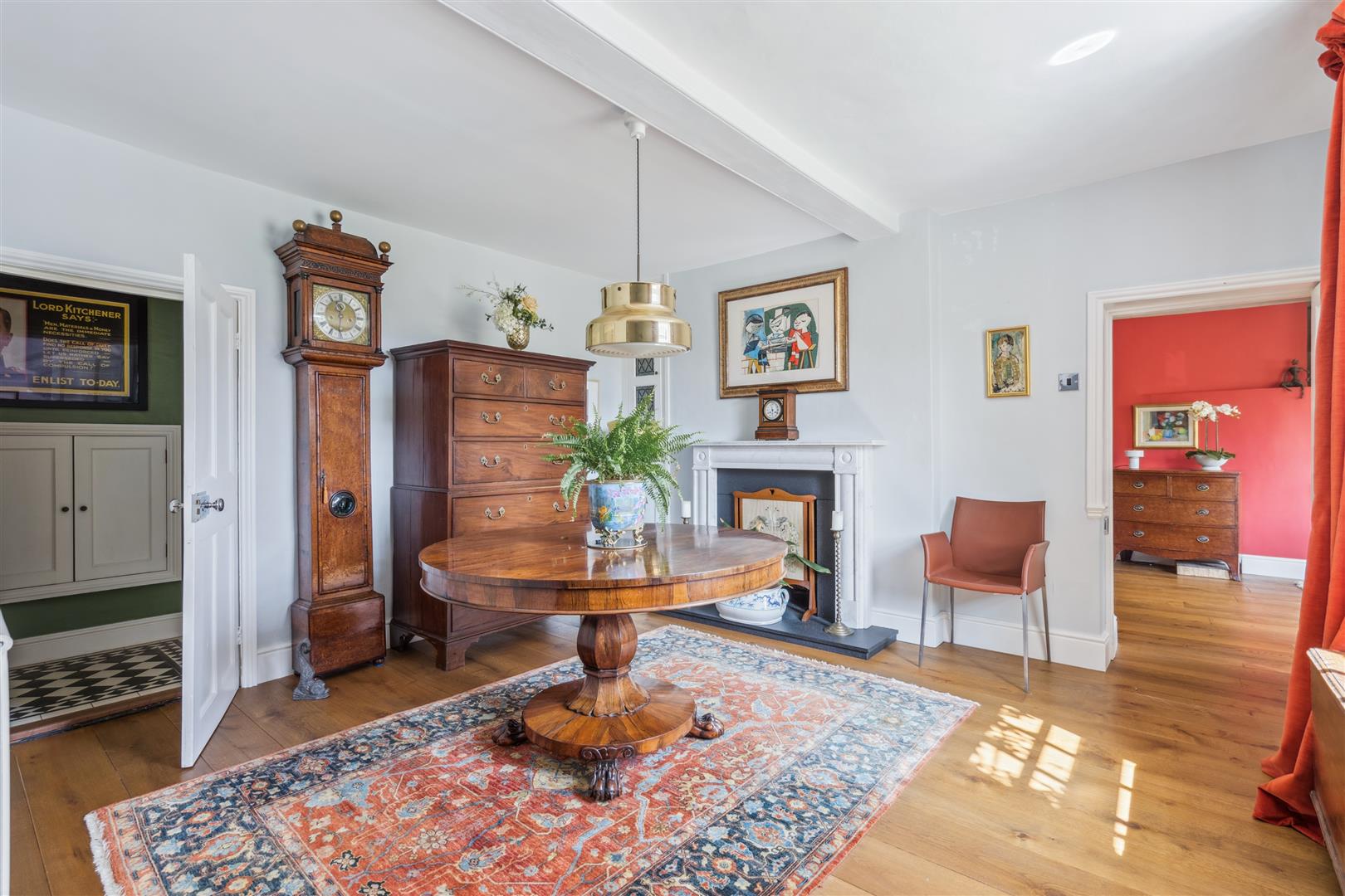 On entry to the property you step into a generously proportioned vestibule with a cloakroom to one corner. To one side of this grand reception area is an elegant study or snug with an impressive fireplace and a good range of shelved cabinets to one wall, the central unit having an attractive arch. The accommodation on the opposing side of the vestibule finds a library room with beamed ceiling which is open to the dining area which is also beamed to the ceiling. There are walk in storage and larder cupboards within this room. Wood flooring is predominant to these reception areas. Thereafter, step into the kitchen/breakfast which is fully glazed to the rear elevation allowing excellent natural light. The kitchen has many integrated appliances inclusive of a coffee maker, built in ovens, fridge freezer, two dishwashers and wine fridge. There is also a “Zip" tap providing instant chilled, filtered and boiling water. A central island unit offers several cabinets, pan drawers and a “Siemens” hob with pop up extractor. The aspect from this room is delightful towards the wisteria clad terrace. An inner lobby leads to a spacious utility room. Completing the ground floor accommodation is the slightly extended sitting room. Glazed French Doors allow views into the colourful and well stocked gardens.