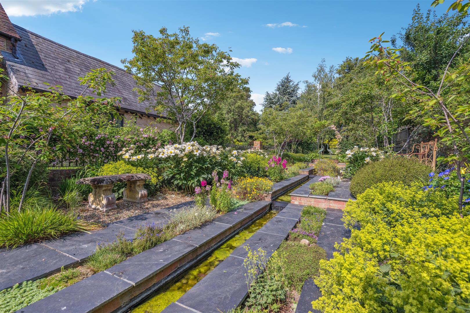 Immediately to the rear of the property is the wisteria clad paved terrace and courtyard, excellent entertainment areas which front a beautiful rill flowing gently towards the property. The rill is bordered by paving which is interspersed with shrubbery, topiary and various varieties of flowering plant. Beyond this is grassland and the double garage. Elsewhere there is a large garden shed, greenhouse and sheltered vegetable garden arranged in raised beds. Finally, there is a paddock area not currently housing any animals but neatly maintained with areas of wildflower meadow. Our sellers have a pergola in this area, a serene outdoor space to enjoy birdsong and absolute peace and quiet.