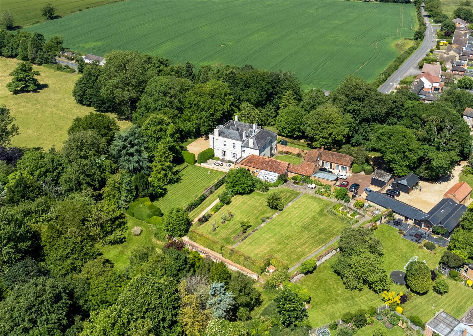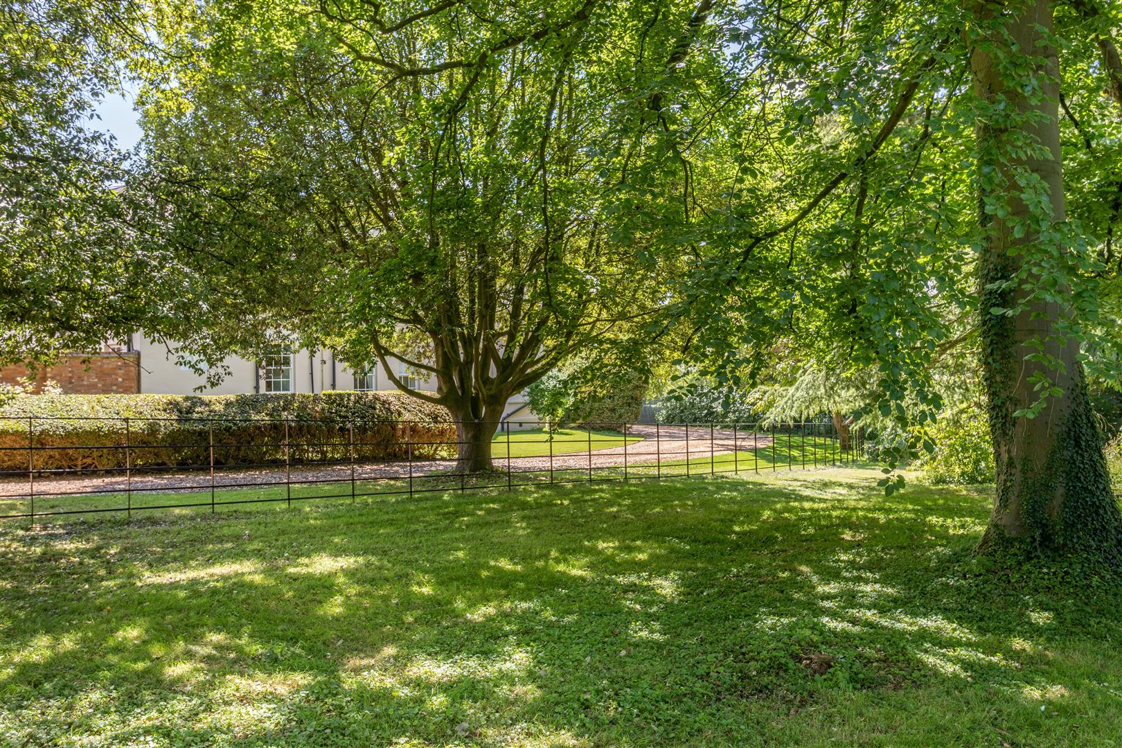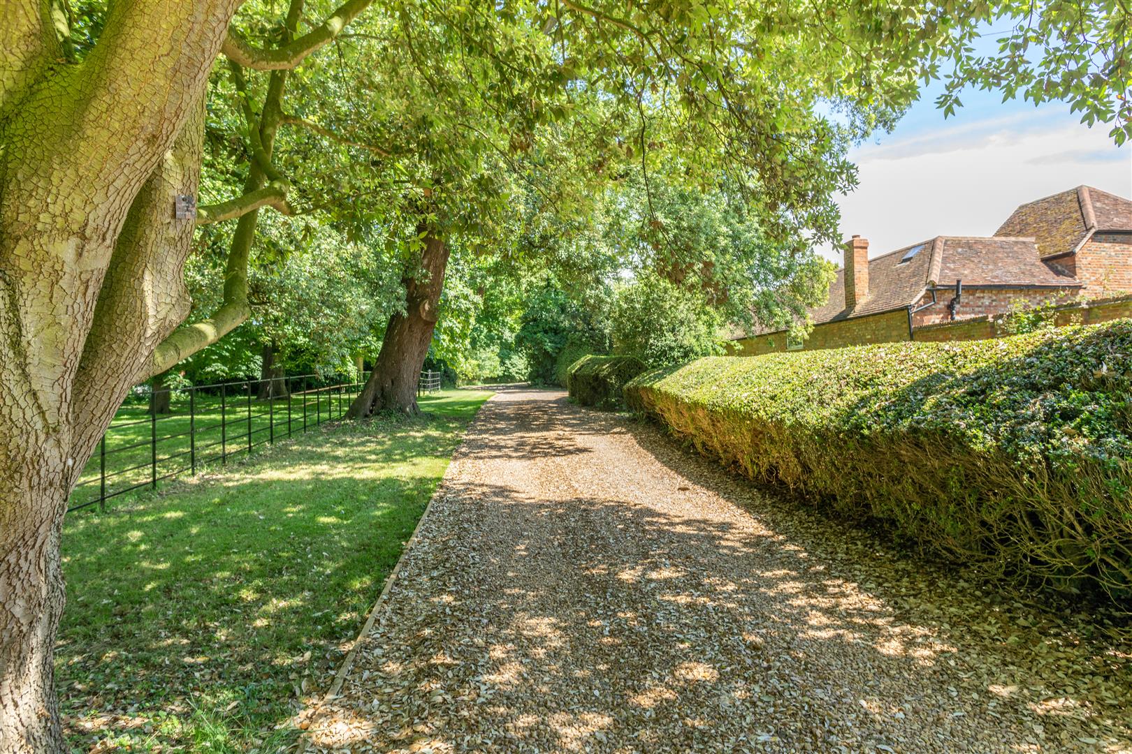 From the village High Street a wooden gate opens to a gravel driveway which sweeps round to the right following a path between mature hedging and a wrought iron fence. Behind the wrought iron fence is an area of mature woodland evidencing specimen hardwood trees. The gravel drive extends around to the front of The Old Rectory where parking is freely available. From its elevated position The Old Rectory can take in an unrivalled vista over lush open countryside, green fields as far as the eye can see.