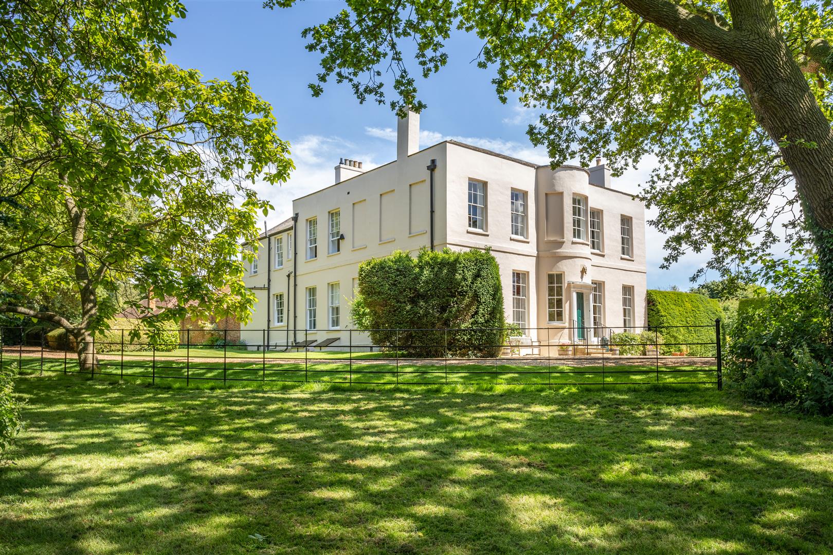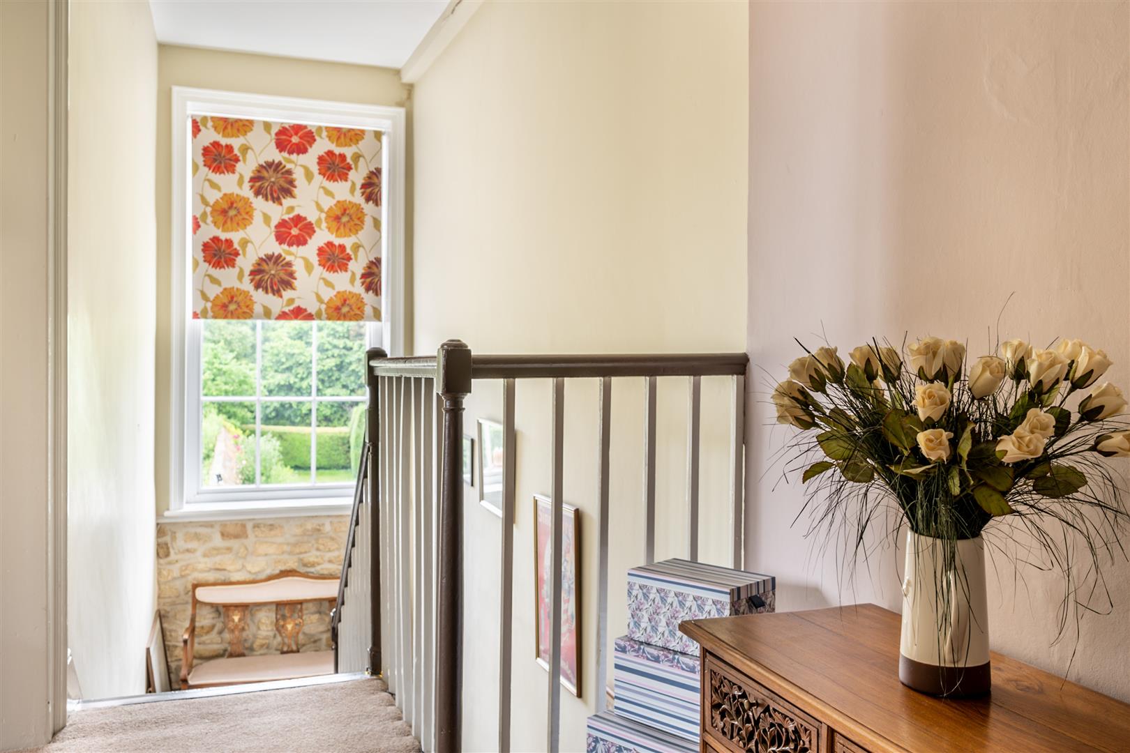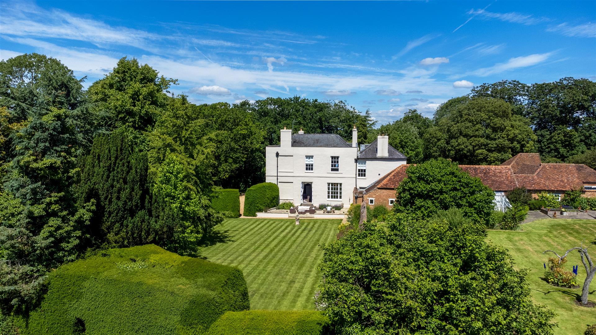From the village High Street a wooden gate opens to a gravel driveway which sweeps round to the right following a path between mature hedging and a wrought iron fence. Behind the wrought iron fence is an area of mature woodland evidencing specimen hardwood trees. The gravel drive extends around to the front of The Old Rectory where parking is freely available. From its elevated position The Old Rectory can take in an unrivalled vista over lush open countryside, green fields as far as the eye can see.