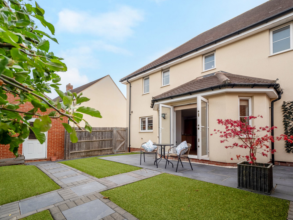 The front of the property is neatly presented with box hedging and there is a private driveway providing off-street parking and access to a single garage. The low-maintenance rear garden is enclosed with timber fencing and features a paved patio and artificial lawn, with a mix of shrubs and young trees to the perimeter.
