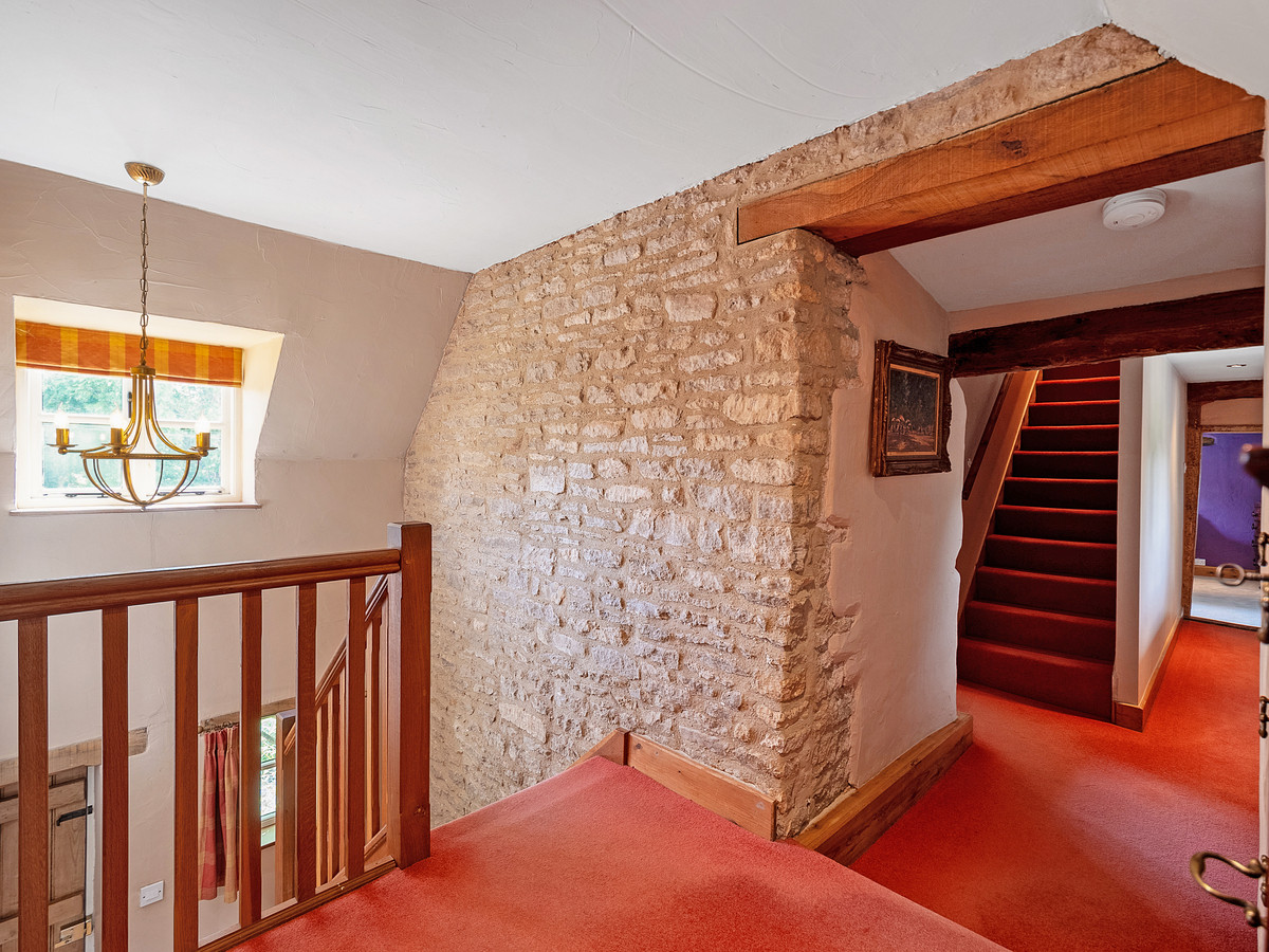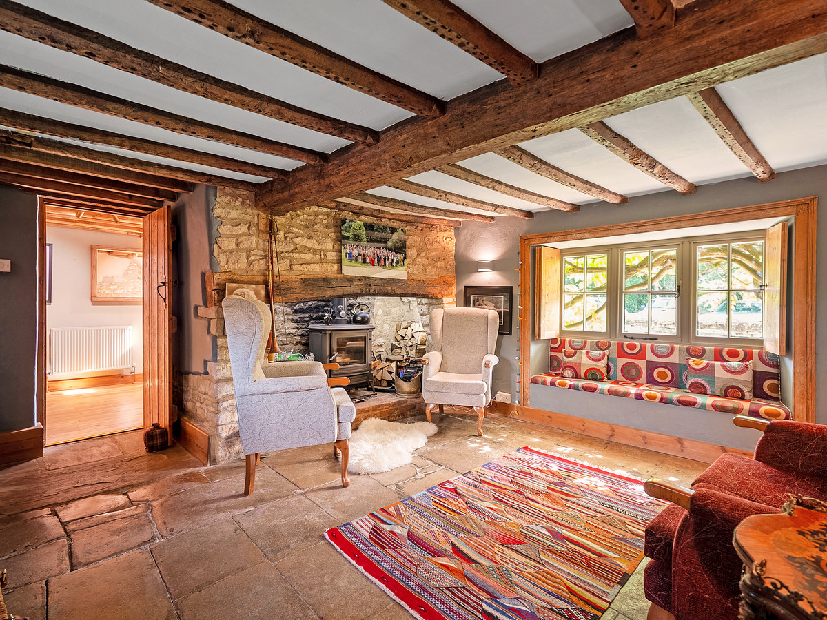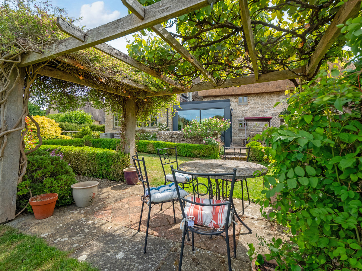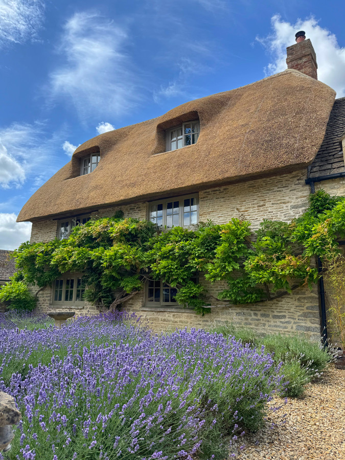 Constructed from traditional Cotswold stone with a partially thatched roof, the