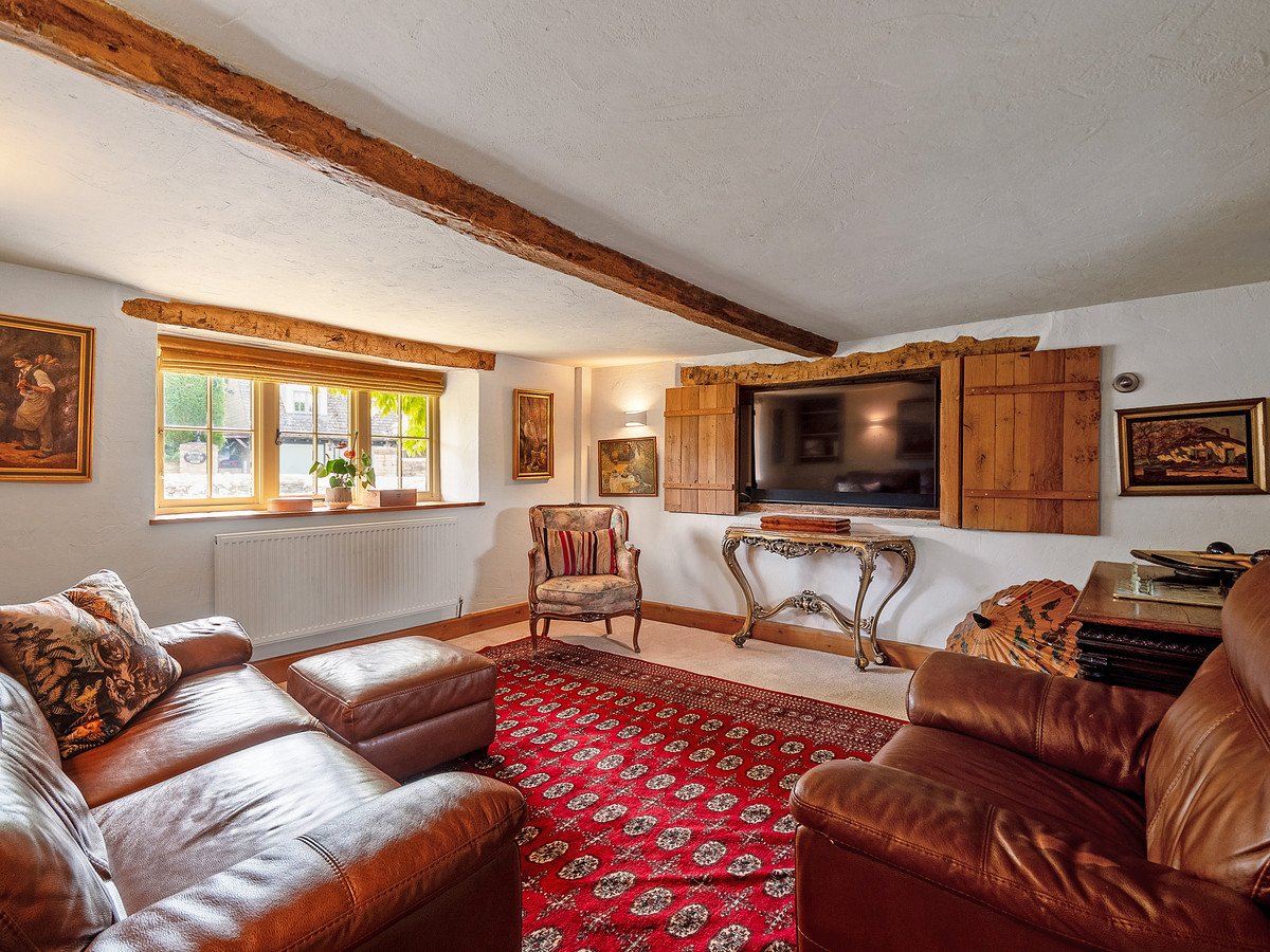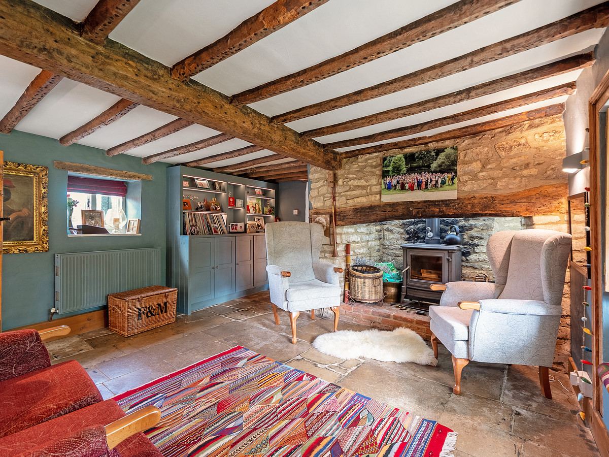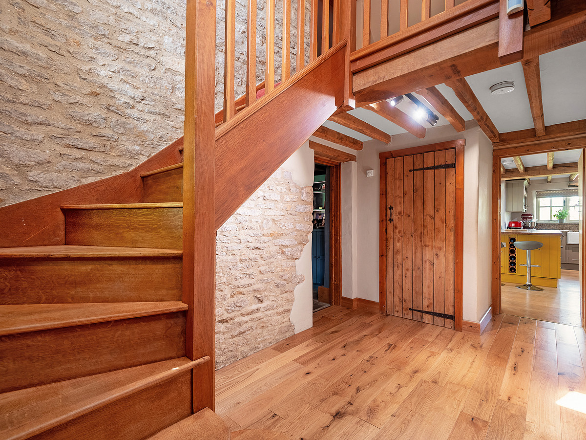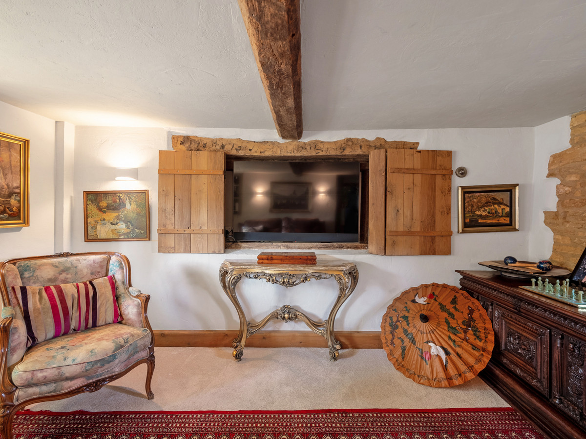 Constructed from traditional Cotswold stone with a partially thatched roof, the