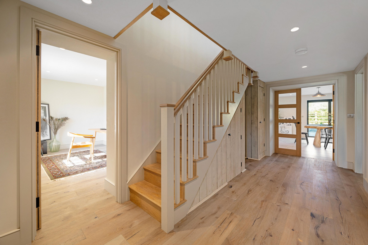 From the Minster Cotswold paving and French oak-framed porch to the hand-finished hardwood front door, The Boot immediately sets a tone of quiet luxury. Inside, the palette of engineered grey-washed oak flooring, bespoke oak joinery, and locally sourced porcelain finishes reflects a commitment to enduring quality.