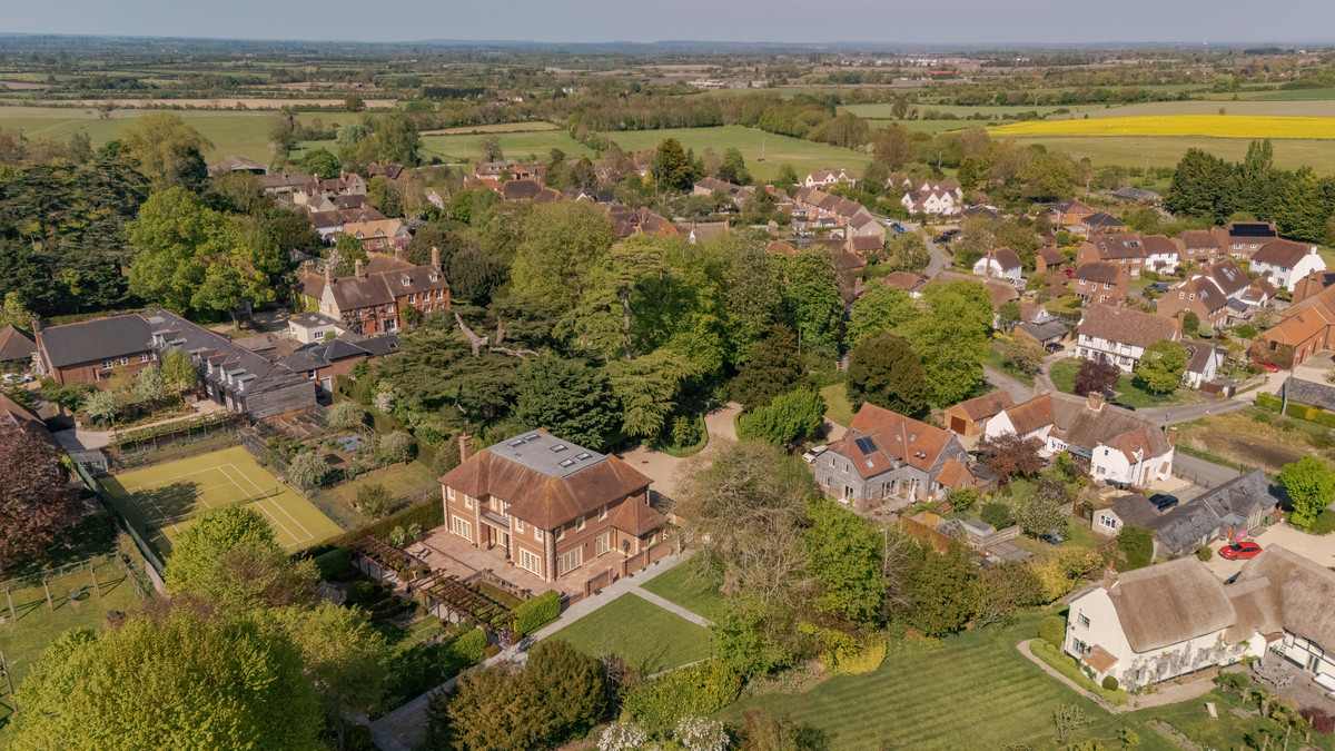 Elegant Georgian style country home over 5,600 sq.ft, featuring a grand reception hall, formal living spaces, cinema, study and bespoke kitchen. Luxurious bedrooms, versatile top floor, landscaped gardens, sun terraces, and a heated double garage. Set on 0.7 acres in the picturesque village of Childrey.