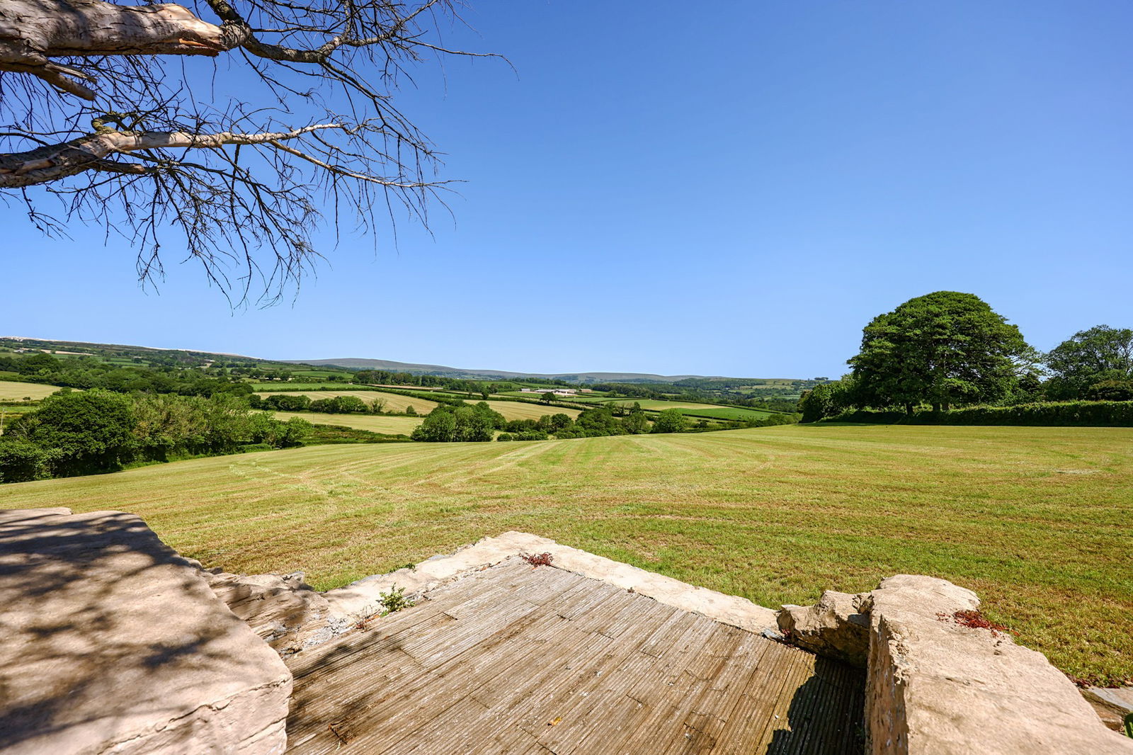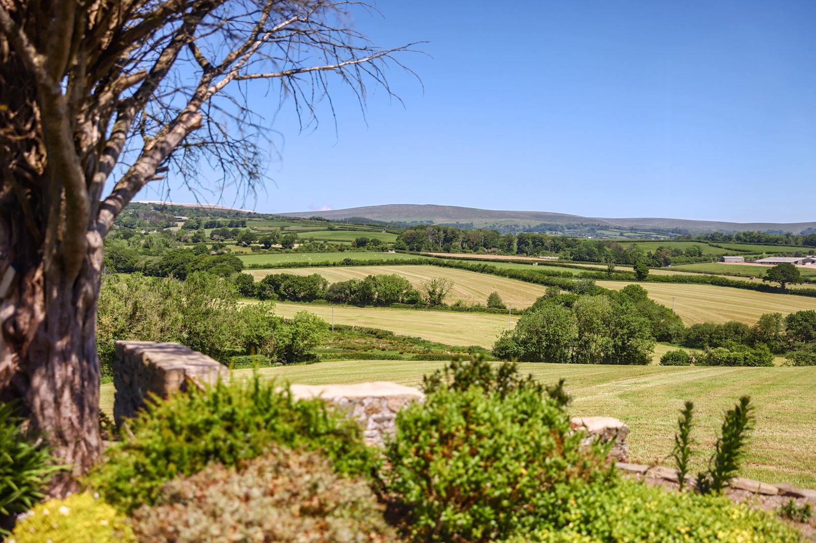 When the weather cools, you can cuddle up by the working wrought iron fireplace, which serves as the heart of this warmly inviting room. And look out onto the snow topped Moorland Tors.