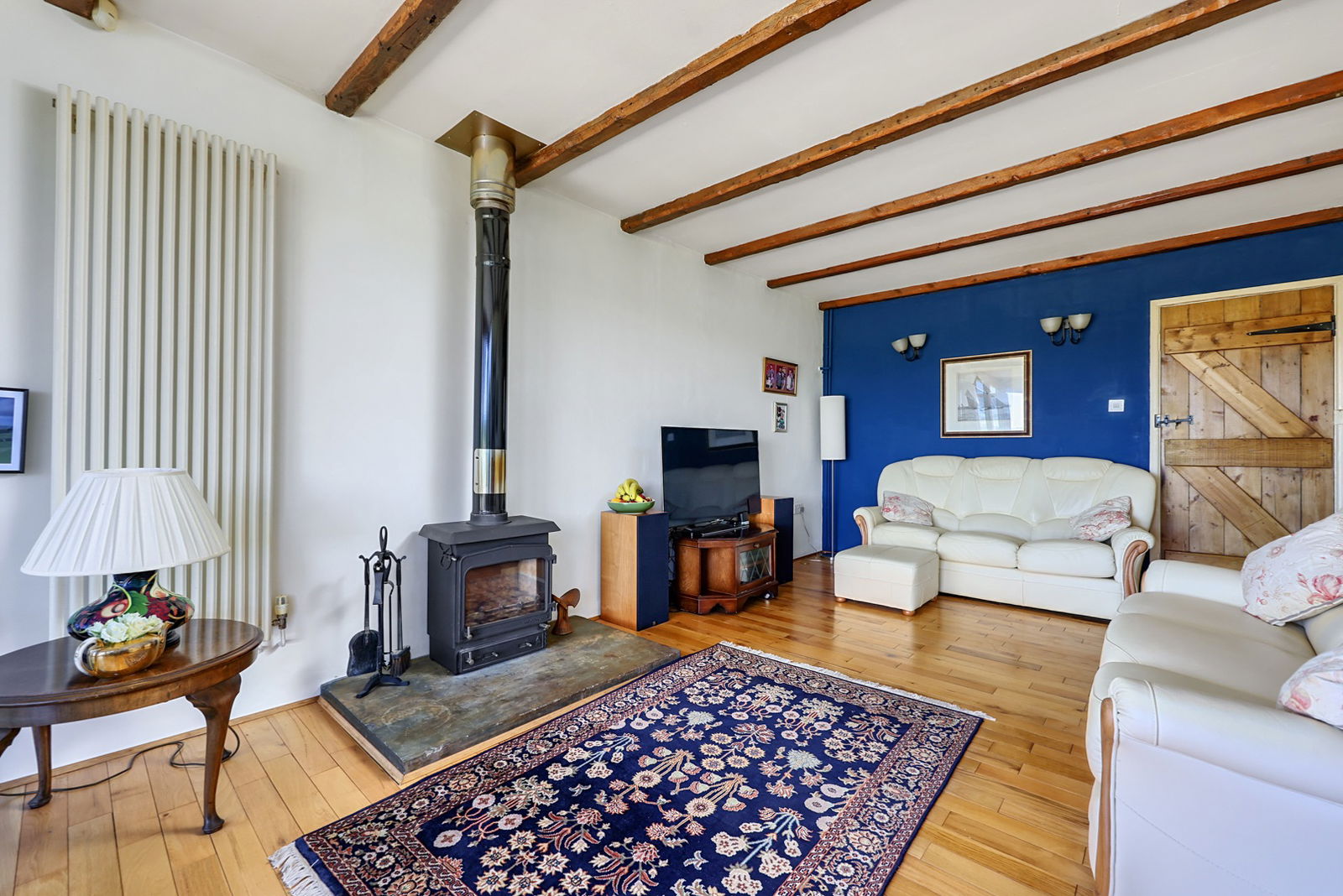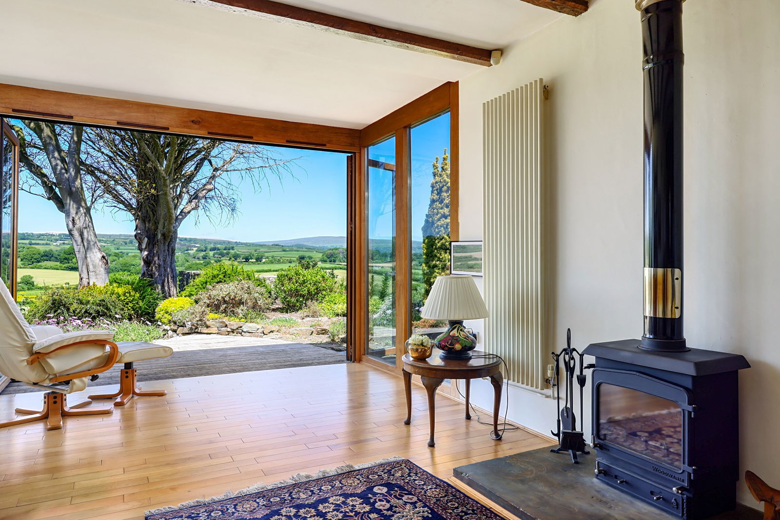 The sitting room extension brings plenty of natural light inside, it becomes a cosy space with a wood-burner in the cooler months with stunning panoramic views all-year round, but particularly special in the spring and summer seasons with bi-folding doors opening to the garden and absorbing the rural life.